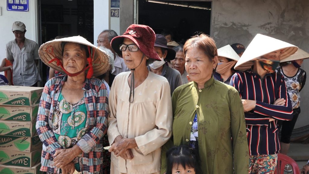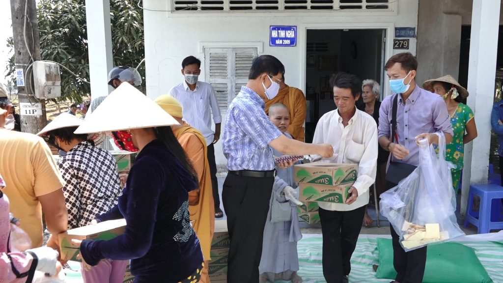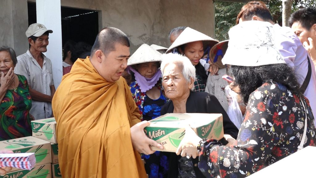 Tại đây đoàn đã trao tặng 100 phần quà đến tận tay bà con gồm: 10kg gạo, 1 thùng mì và tiền mặt. Tổng kinh phí trong đợt phát quà này là 25 triệu đồng do Phật tử Ngọc Đăng, Ngọc Tánh cùng các mạnh thường quân và Phật tử tịnh xá Ngọc Sơn hùn phước gởi tới bà con.