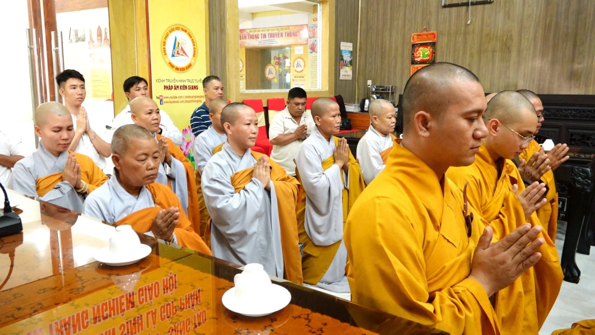 Đại diện cho Tăng, Ni Thường trực BTS GHPGVN tỉnh Kiên Giang và tông môn Phật Quang, ĐĐ. Thích Pháp Trí – Chánh Thư ký BTS GHPGVN tỉnh Kiên Giang đã gửi lời kính chúc đến TT. Thích Minh Nhẫn được dồi dào sức khỏe, Phật sự được viên thành, tiếp tục lèo lái con thuyền Phật pháp là bóng cây đại thọ che mát cho hàng Tăng Ni, Phật tử tỉnh nhà.