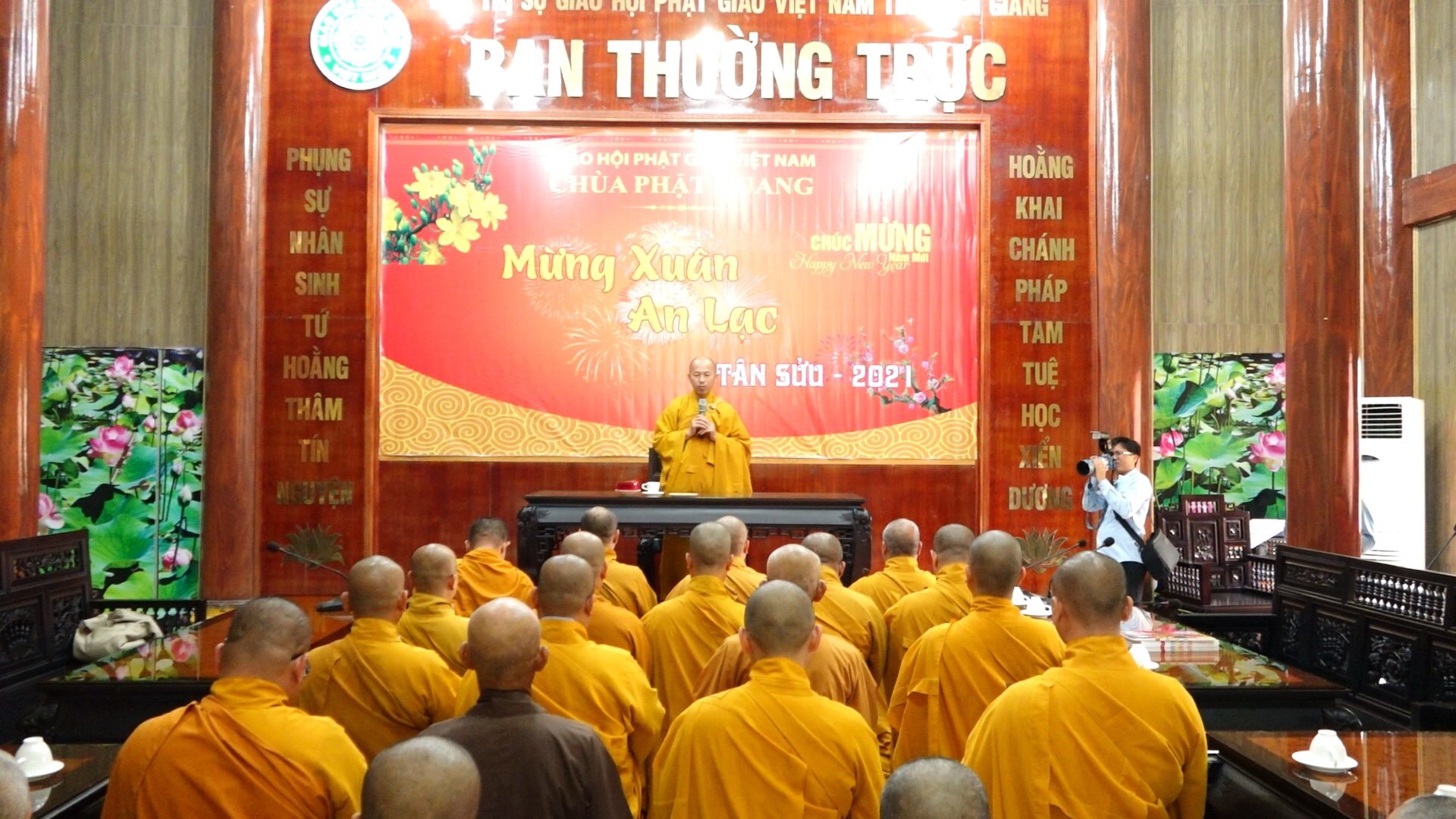 Sau đó, Thượng tọa cũng gửi lời chúc chư Tôn đức Tông phong Phật Quang, những người đệ tử sớm thành tựu sở nguyện, năm mới vạn sự hanh thông, Phật sự viên thành, là nơi nương tựa cho hàng Phật tử tại trú xứ.