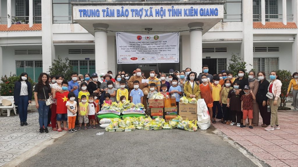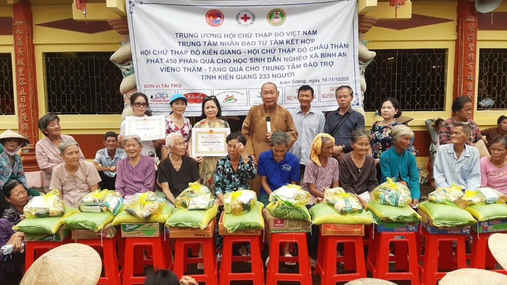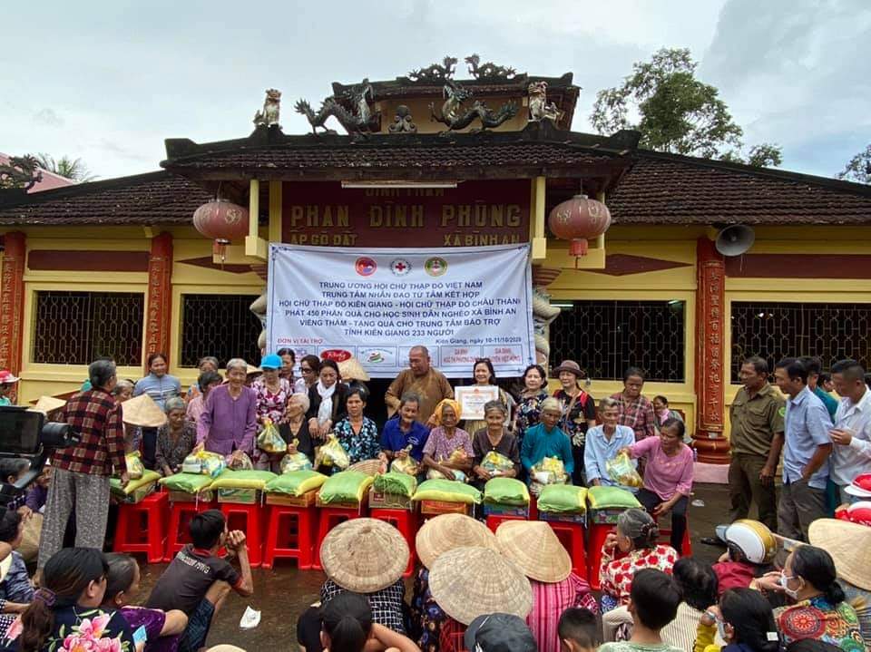 Đoàn viếng thăm Trung tâm Bảo trợ xã hội tỉnh Kiên Giang và đã phát 335 phần quà: gồm gạo, mì gói, đường , bột ngọt, nước tương, bánh, kẹo, sữa tươi hộp, tập viết, đồ dùng học tập, kèm bao thư tiền mặt, đồng thời đoàn cũng ghé thăm và cúng dường chùa Tam Bảo ở Nha Mân (huyện Cái Tàu Hạ, tỉnh Đồng Tháp).