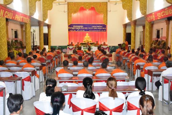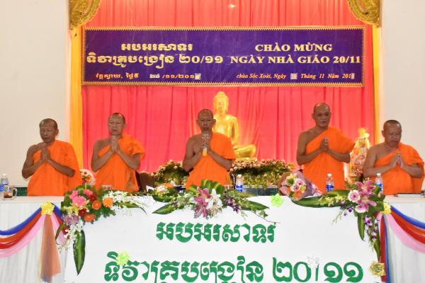 Cũng chính vì lẽ đó, chiều ngày 20/11/2019, trường Sơ Cấp Phật Học Pali – Kinh Luận Giới tỉnh Kiên Giang tại chùa Sóc Xoài, thị trấn Sóc Sơn, huyện Hòn Đất, tỉnh Kiên Giang đã trang nhiêm tổ chức lễ kỷ niệm ngày nhà giáo Việt Nam, buổi lễ diễn ra trong không khí ấm áp tình thầy trò.