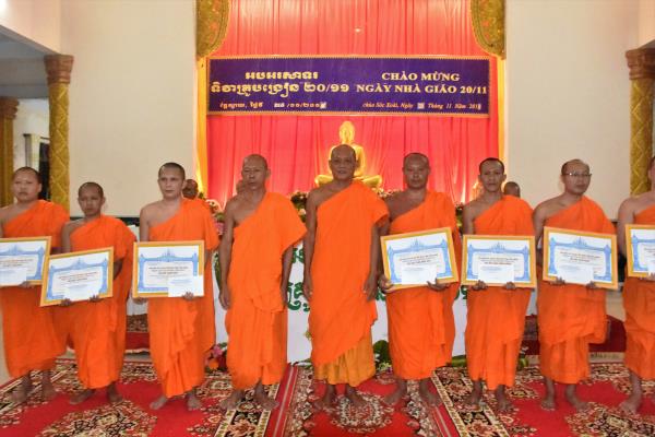 Nhằm để tri ân tấm lòng cao cả của của quý vị Hòa thượng, thượng tọa trong ban điều hành trường các vị Tăng sinh cũng đã có những lãng hoa tươi thấm trao tăng quý ngài nhân ngày kỷ niệm 20/11, đồng thời để ghi nhận những đóng góp to lớn của các vị Giáo viên nơi đây về phía tỉnh Hội cũng đã có những phần quà mang đậm nghĩa tình trao tặng cho các vị Giáo viên tại nơi đây.