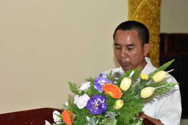 Tại buổi lễ, Đại Đức Danh Minh Cường thay mặt toàn thể Giáo viên báo cáo sơ bộ về tình hình của Tăng sinh tại đây. Trường Sơ Cấp Phật Học Pali – Kinh Luận Giới tỉnh Kiên Giang tại chùa Sóc Xoài tiền thân là trường Sơ Cấp Pali chùa Sóc Xoài được thành lập vào năm 1997 đến nay đã trải qua 22 năm hoạt động.