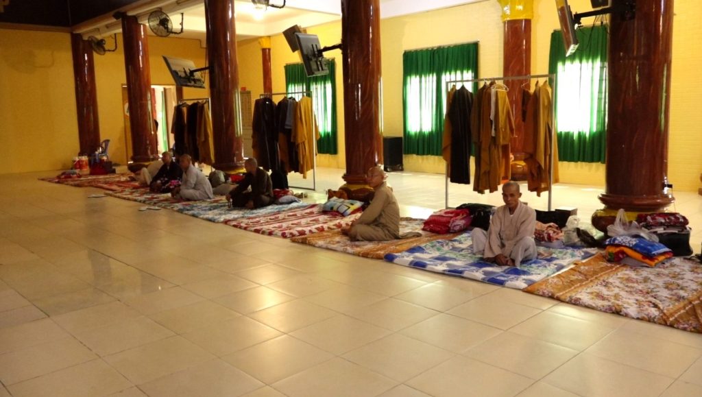 Nơi nghỉ của chư Tôn đức TăngTrong “Tuần lễ kiết đông – Thất nhựt Giáo giới”, tất cả hành giả an trú trong khuôn viên giới tràng quy định. Không sử dụng điện thoại, không liên lạc, không tiếp khách. Cùng chung ngủ nghỉ nơi 1 hội trường lớn với tiện nghi đơn sơ đề cao tinh thần “Sống lại thuở ban đầu” như lúc mới vào chùa xuất gia học đạo. Nỗ lực không ngừng nghỉ, nương nhờ đức chúng như hải và đời sống Tăng thân để nương tựa soi rọi lại chính mình, hoàn thiện bản thân, sống theo “Lục hòa cộng trụ”.