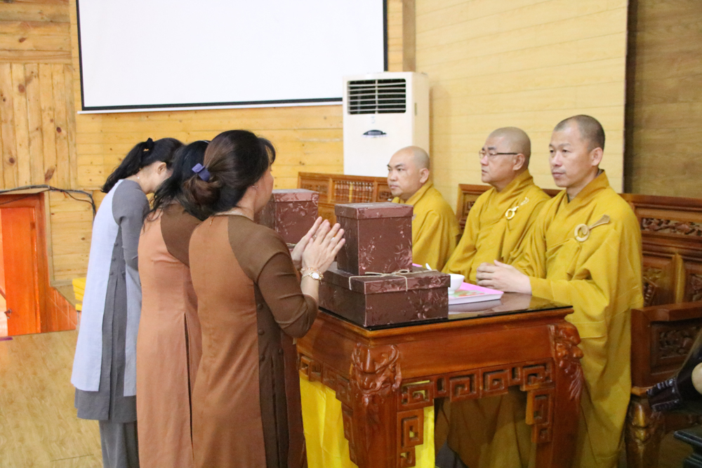 Phật tử Diệu Phượng đại diện đạo tràng Sắc Tứ Thập Phương tác bạch cúng dường lên chư Tôn đức Ni