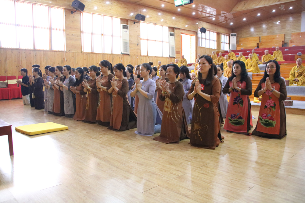 Chư Ni trang nghiêm nghe giáo giáo giới và trì tụng giới bổn- Trong đời sống thường nhật, giới luật là nền tảng quan trọng, là nấc thang tiến đạo, là điểm then chốt giúp hành giả an định tâm, thực hành thiện pháp, lợi lạc chúng sanh. Mỗi ngày 2 thời, trì tụng giới bổn và giáo giới từ chư Tôn đức Giáo phẩm, vào lúc 8h sáng và 14h chiều. Trong thanh âm trầm bổng, những giới điều, lời Phật dạy như được rót sâu vào lòng mỗi hành giả, hãy khắc cốt ghi tâm giữ gìn trọn vẹn giới pháp mà chư Phật đã truyền trao.