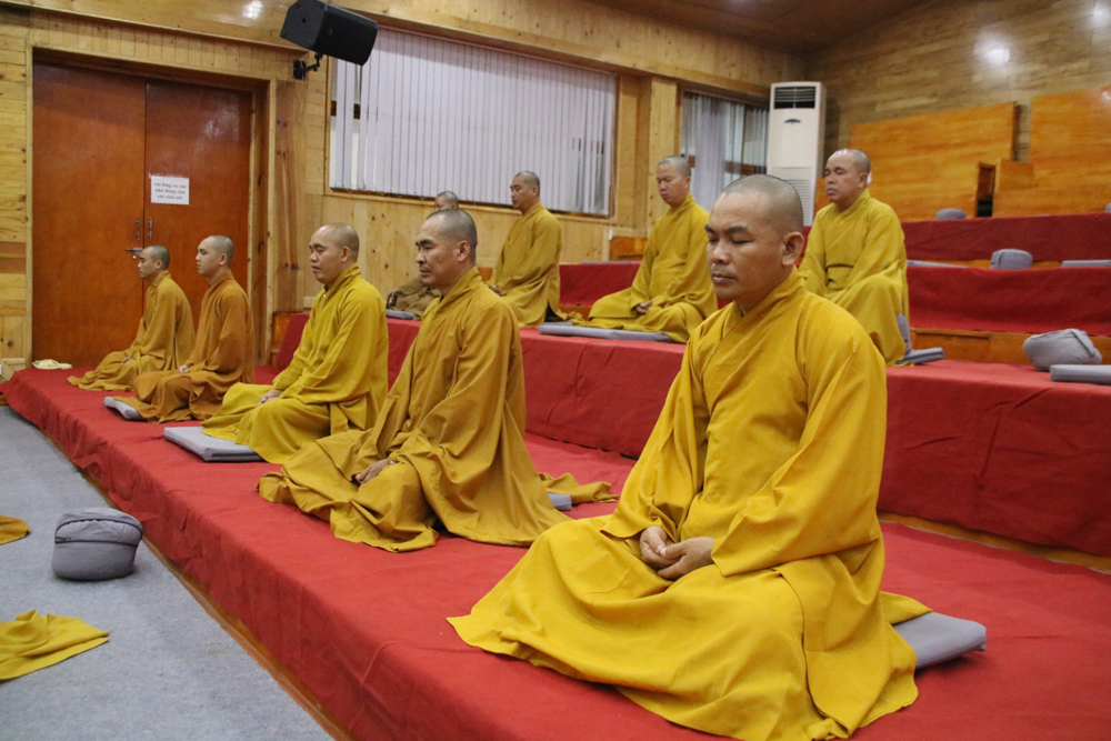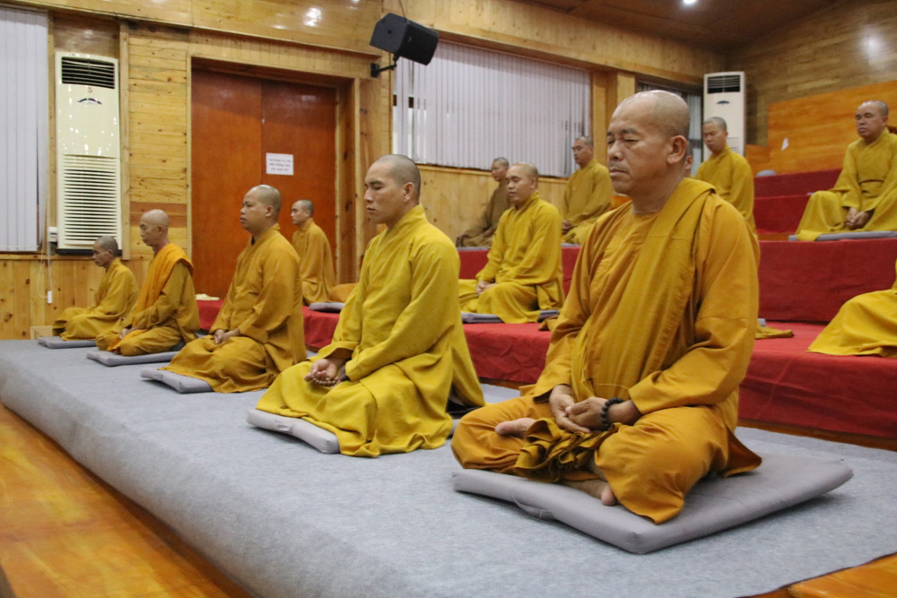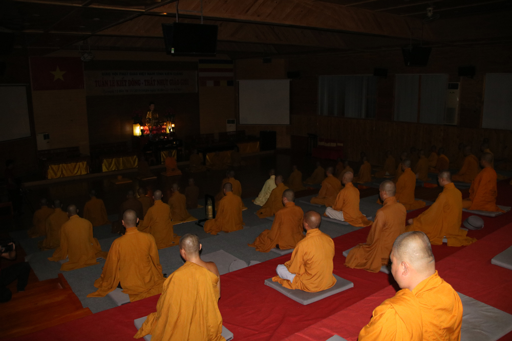 - Giờ tọa thiền bắt đầu lúc 21h00 mỗi ngày. Mỗi hành giả đều thể nghiệm niềm an lạc, hạnh phúc từ thiền định đem đến và quán xét chiêm nghiệm lại các hoạt động Phật sự của thời gian qua để rút ra bài học kinh nghiệm.