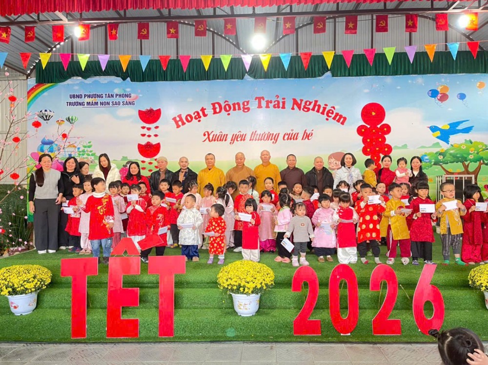 Sau phiên họp, đại diện Thường trực Ban Trị sự GHPGVN tỉnh Lai Châu đã đến Trường Mầm non Sao Sáng và Trường THCS Đoàn Kết trao tặng 100 suất quà Tết Bính Ngọ cho 100 em học sinh có hoàn cảnh khó khăn, nỗ lực vươn lên trong học tập trên địa bàn, góp phần động viên tinh thần các em nhân dịp Xuân mới.
