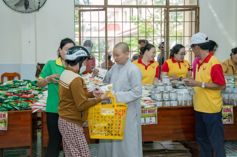 TT. Thích Quảng Cao chia sẻ: “Trong hôm nay, Ban Từ thiện xã hội Phật giáo tỉnh xây dựng 2 điểm chợ là Phường Hàm Thắng và xã Hàm Thuận Bắc, mỗi nơi 500 phiếu đi chợ, giá trị mỗi phiếu gần 1 triệu đồng. Tổng kinh phí thực hiện chương trình khoảng 1 tỷ đồng. Mỗi món quà trao đi là một lời nguyện cầu bình an, lời động viên thiết thực gởi đến bà con quê hương mình”.