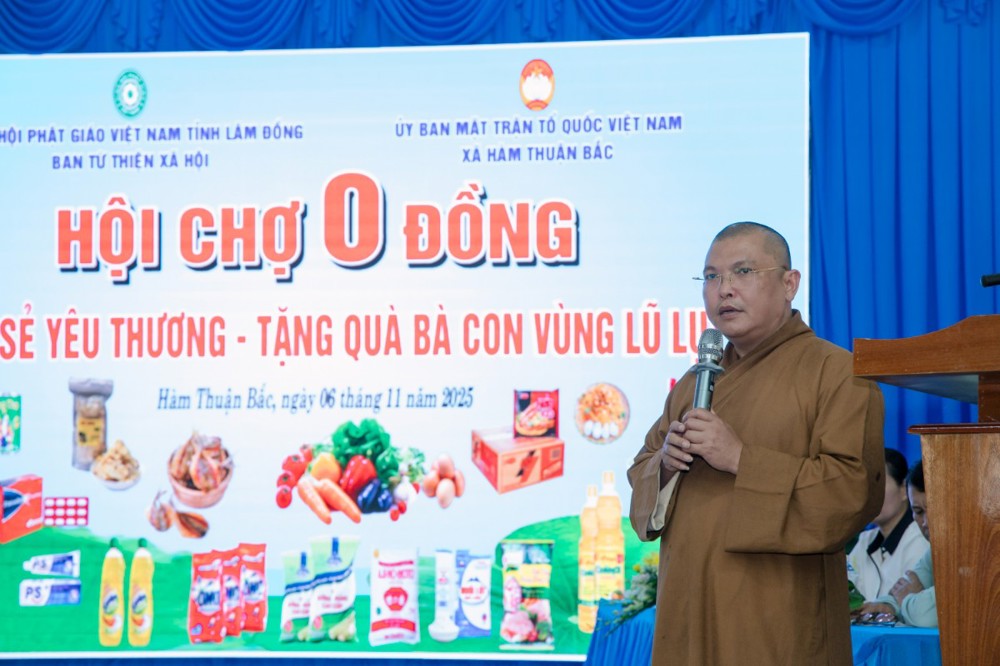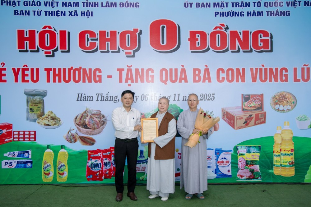 PSO - Sáng ngày 6/11/2025, tại phường Hàm Thắng, Ban Từ thiện xã hội GHPGVN tỉnh Lâm Đồng đã tổ chức “Phiên chợ 0 đồng” nhằm động viên tinh thần và hỗ trợ nhu yếu phẩm cho các hộ dân chịu thiệt hại nặng trong đợt ngập lụt vừa qua.