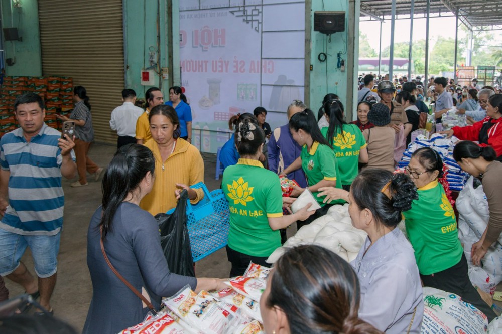 “Phiên chợ 0 đồng” được bài trí thành 27 gian hàng miễn phí, với gần 40 mặt hàng, đầy đủ nhu yếu phẩm như: gạo, mì, dầu, đường, thuốc men, rau củ quả,... Mỗi gian hàng đều được Phật tử và tình nguyện viên hướng dẫn tận tình, giúp bà con tự chọn những món đồ phù hợp với nhu cầu, đúng tinh thần “trao đi mà không phân biệt, nhận về trong niềm hoan hỷ”.