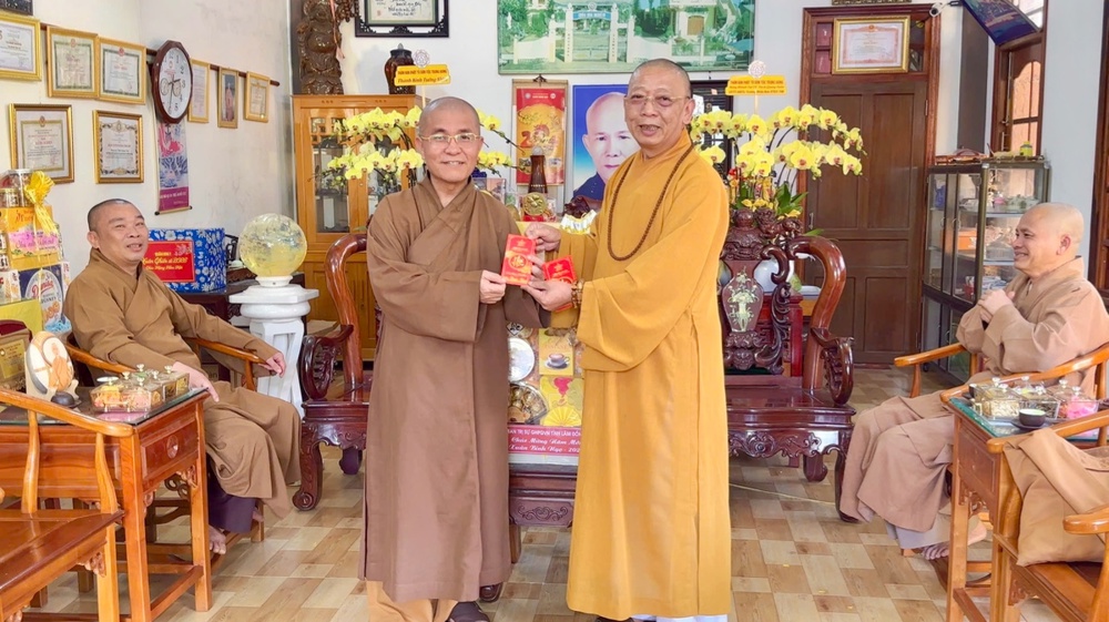 Tại buổi gặp mặt, thay mặt BTS tỉnh, Thượng tọa Thích Quảng Hiền đã dâng lời thăm hỏi sức khỏe và gửi lời chúc mừng năm mới Xuân Bính Ngọ 2026 cát tường đến Thượng tọa chứng minh.