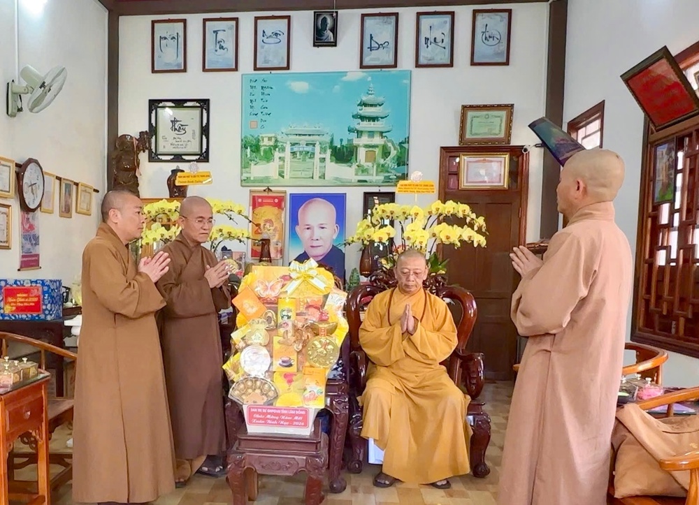 Đoàn đã quang lâm chùa Hoa Nghiêm khánh tuế, chúc mừng năm mới tới Thượng tọa Thích Quảng Tuấn – Ủy viên Thường trực HĐTS GHPGVN, Phó Trưởng ban Hướng dẫn Phật tử Trung ương, Trưởng Phân ban Phật tử Dân tộc Trung ương, Chứng minh BTS GHPGVN tỉnh Lâm Đồng.