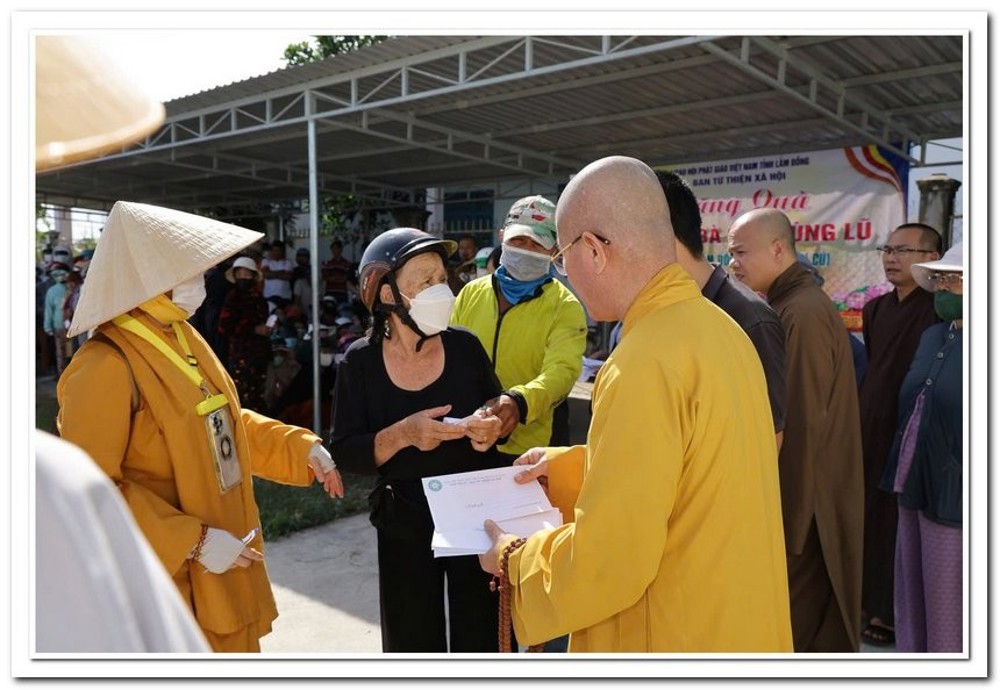 Mỗi phần quà gồm 400.000 vnđ và 10kg gạo, 1 cái mền, 1 bao rau củ quả và 1 chai dầu gió. Trị giá mỗi phần quà là 700.000vnđ. Tổng kinh phí cho chương trình cứu trợ lần này là 770,000,000 vnđ (Bảy trăm bảy mươi triệu đồng). Đây là cả tấm lòng yêu thương, tinh thần nhân ái của Tăng Ni, Phật tử trên địa bàn tỉnh Lâm Đồng và quý Mạnh thường quân khắp nơi đồng long hướng về san sẻ tình người trong lúc khó khăn. Nhờ đó mà chúng ta thấy được tinh thần từ bi, cứu khổ cứu nạn của đạo Phật, đồng thời là minh chứng sinh động cho sự gắn kết giữa đạo pháp và dân tộc, đặc biệt trong những lúc người dân gặp thiên tai, hoạn nạn. Tình người gắn kết với nhau gần hơn vun đắp, lan tỏa – giúp bà con nơi vùng bão lũ thêm ấm lòng và tiếp tục vững bước trang trãi để sửa sang lại nhà cửa và tiếp tục duy trì đời sống thường nhật.