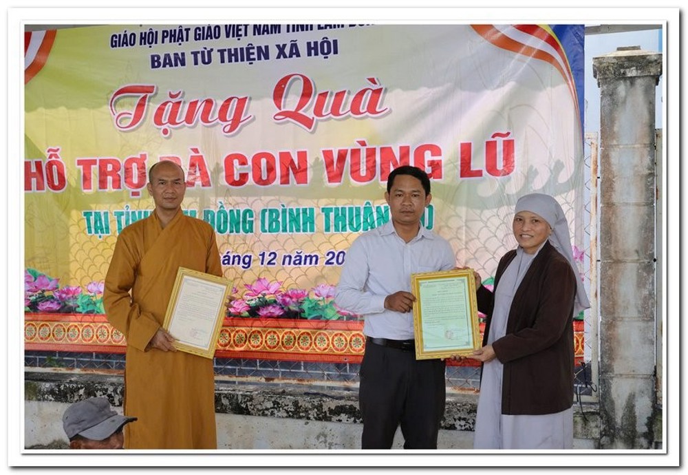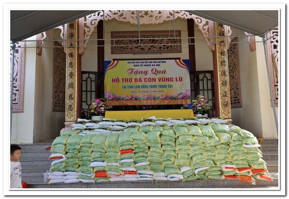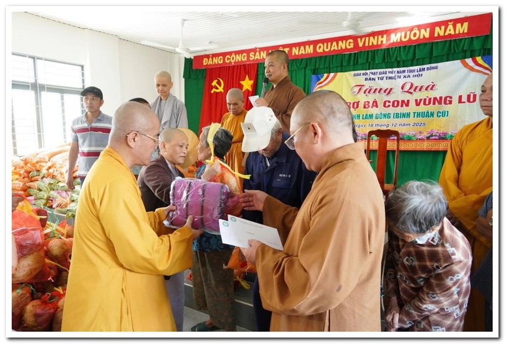 Ngày 16/12/2025 (nhằm ngày 27/10 năm Ất Tỵ), Ban Trị sự GHPGVN tỉnh và Ban Từ thiện xã hội Phật giáo tỉnh đã đến tận nơi trao 1100 phần quà cứu trợ đến bà con ảnh hưởng bởi bão lũ tại phường Hàm Thắng và xã Hàm Thuận tỉnh Lâm Đồng (Bình Thuận cũ).