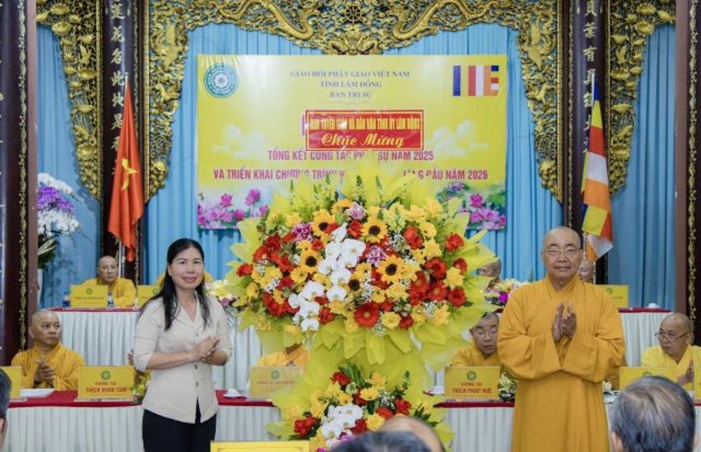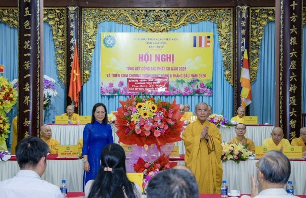 Tại Hội nghị, ĐĐ. Thích Quảng Phát – Phó Thư ký, Chánh Văn phòng Ban Trị sự GHPGVN tỉnh kính trình bản dự thảo báo cáo tổng kết công tác Phật sự năm 2025 và phương hướng hoạt động Phật sự 6 tháng đầu năm 2026, trong năm vừa qua Ban Trị sự Phật giáo tỉnh đã tổ chức thành công Đại lễ Phật đản Vesak Liên hiệp quốc do Việt Nam đăng cai tổ chức tại TP. HCM, được Phật giáo tỉnh nhà tổ chức trọng thể tập trung tại 3 Văn phòng đại diện chùa Linh Sơn (phường Xuân Hương – Đà Lạt), chùa Phật Ân (phường Phan Thiết), chùa Pháp Hoa (phường Bắc Gia Nghĩa), tổ chức diễu hành xe hoa Phật đản với hơn 100 chiếc xe thiết trí nhiều hình ảnh ấn tượng từ Đản sinh đến Niết Bàn hân hoan chào đón sự kiện đản sanh của Đức Phật và tổ chức An cư Kiết hạ tập trung tại 42 điểm An cư, trang nghiêm tổ chức thành công Đại Giới đàn mang tôn hiệu Chơn Thành truyền trao Giới Pháp đến cho 1282 Giới tử và tưởng niệm 717 năm ngày Đức Vua Phật hoàng Trần Nhân Tông nhập niết bàn tại thiền viện Trúc Lâm Chánh Thiện.