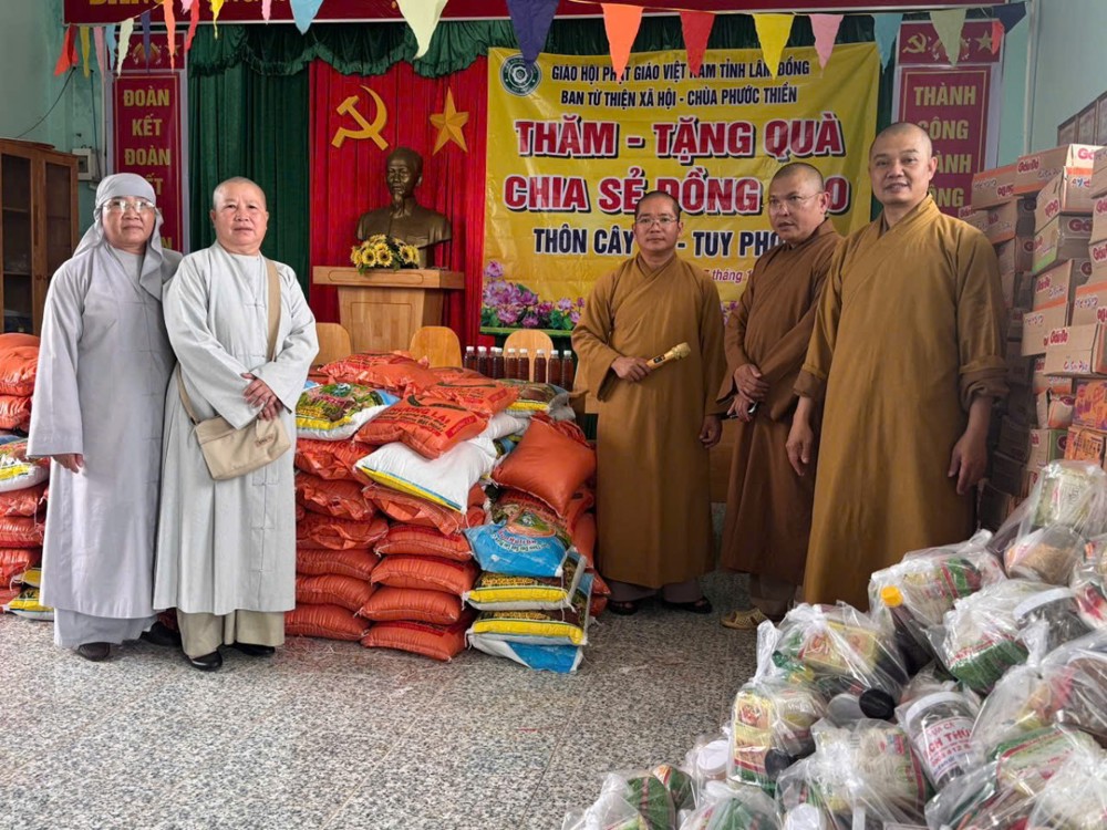 PSO - Tiếp nối chuỗi chương trình từ thiện hỗ trợ bà con các địa phương phục hồi sau thiên tai năm 2025, sáng ngày 7/11/2025, Ban Tù thiện xã hội GHPGVN tỉnh Lâm Đồng, Ban Từ thiện chùa Phước Thiền đã tổ chức thăm và trao tặng 200 phần quà đến bà con tại khu vực Cây Cà, xã Tuy Phong.