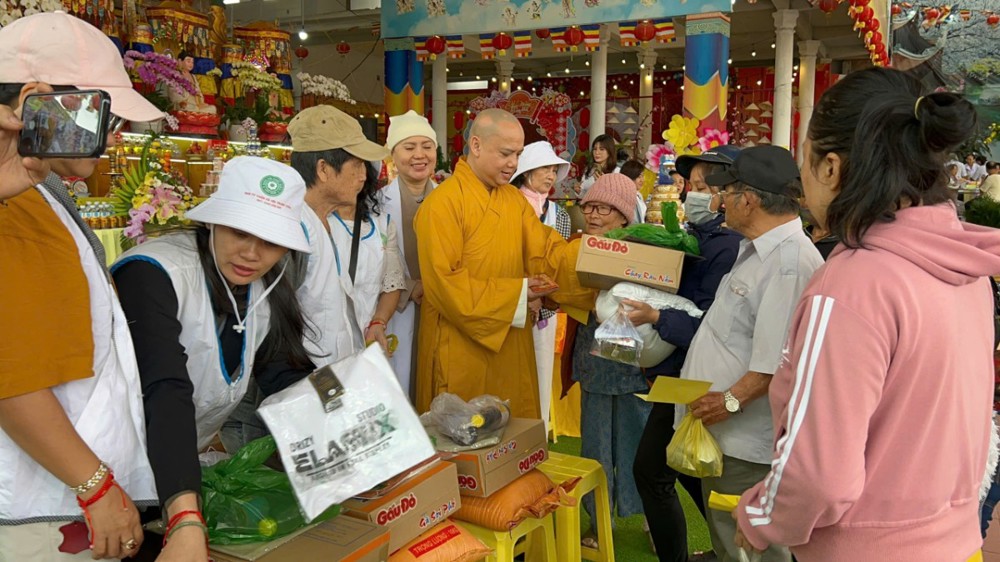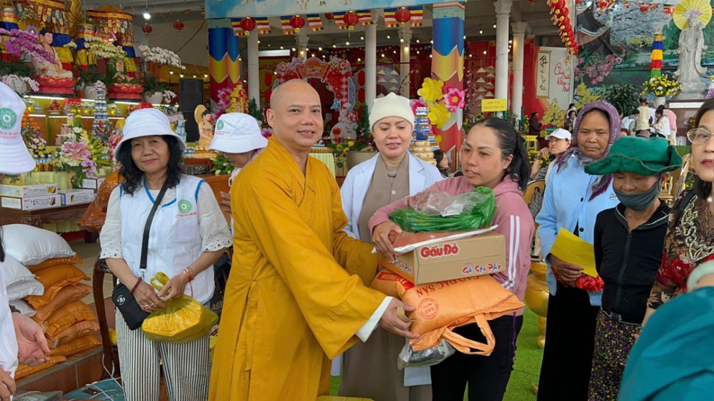 Nhân dịp này, đoàn cũng trao tặng 200 phần quà gồm gạo, mì, nhu yếu phẩm và tịnh tài đến tận tay bà con có hoàn cảnh khó khăn. Tổng kinh phí thực hiện chương trình thiện nguyện lần này hơn 260 triệu đồng.