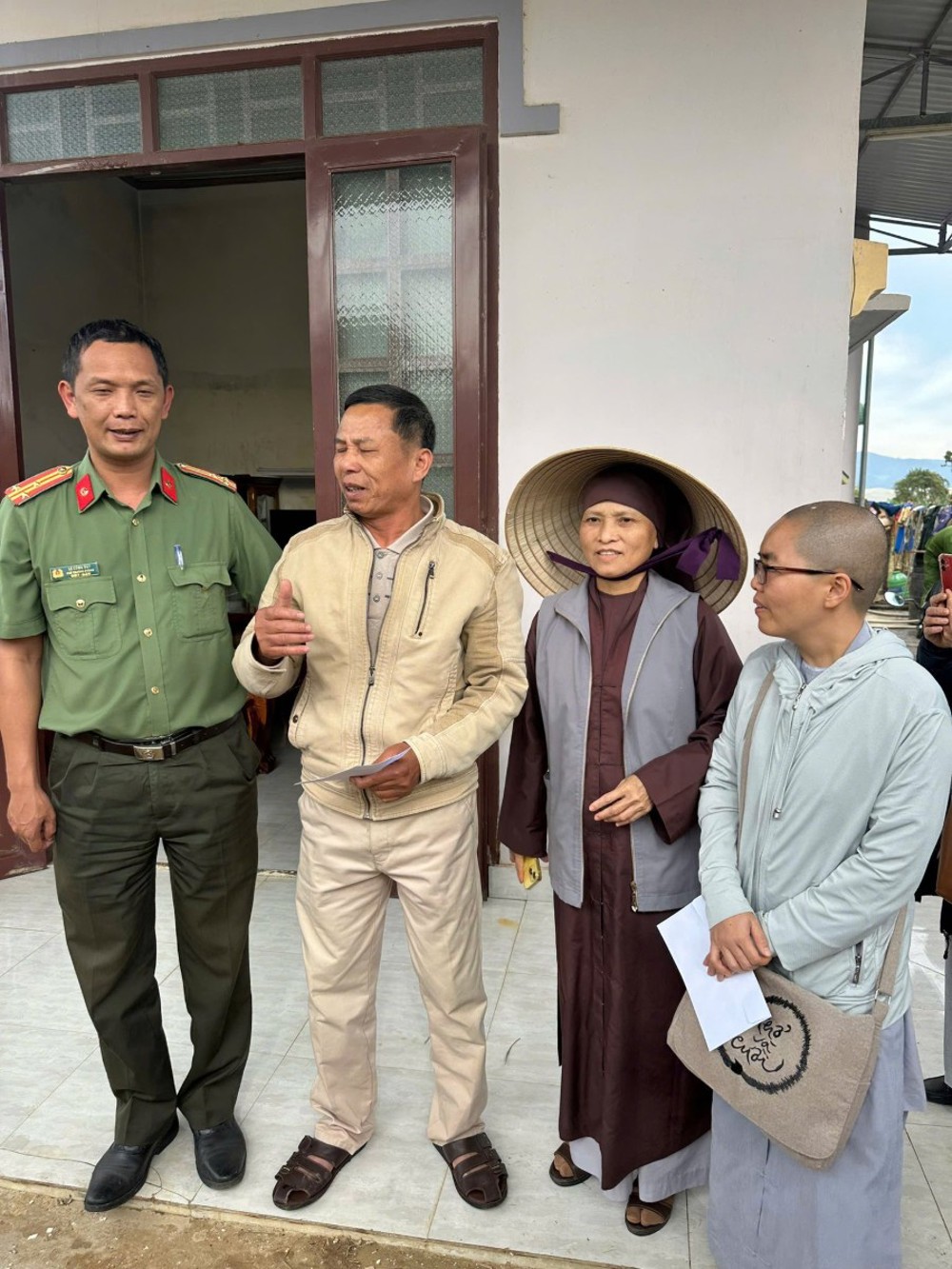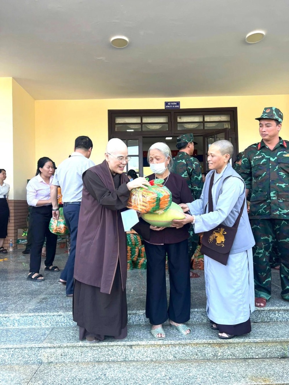 Chuyến đi do Ni sư Thích Nữ Hạnh Khai cùng Thượng tá Lê Công Duy trực tiếp dẫn đoàn, cùng các thành viên Ban TTXH Phật giáo tỉnh và phòng PA 02, vượt qua nhiều đoạn đường còn lầy lội sau lũ đoàn đã đến xã Ka Đô.