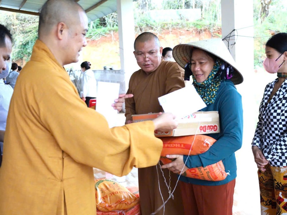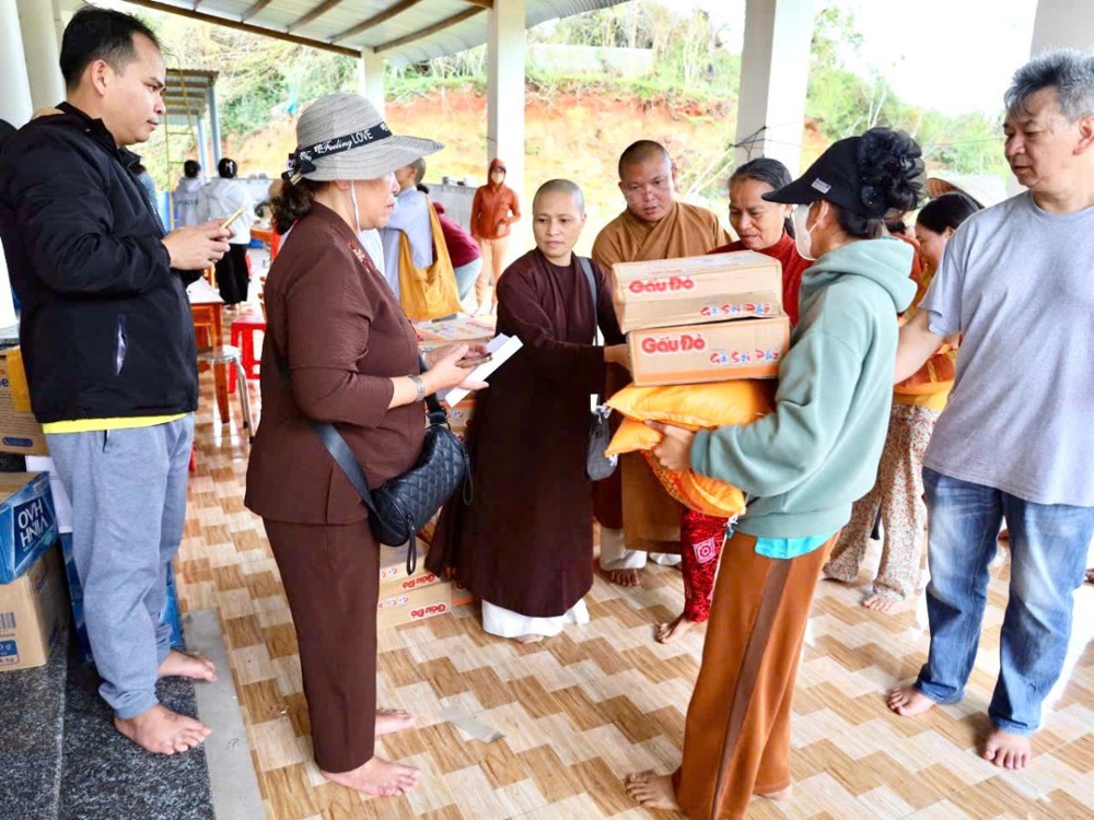 Tổng cộng 517 phần quà được đoàn trao tận tay đồng bào và nhiều tịnh tài tịnh vật cúng dường các chùa bị hư hại do mưa bão. Đây là sự chung tay đóng góp của Tăng Ni và Phật tử tỉnh Lâm Đồng, là minh chứng sống động cho tinh thần từ bi của đạo Phật: “Sáng cho người thêm nhiều niềm vui, chiều giúp đời bớt khổ”.