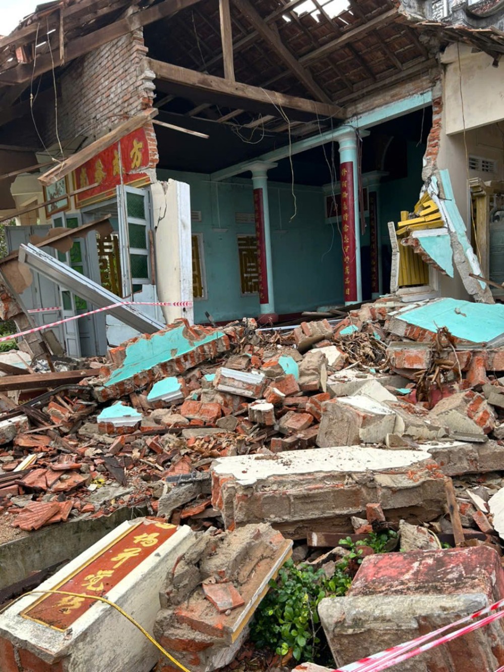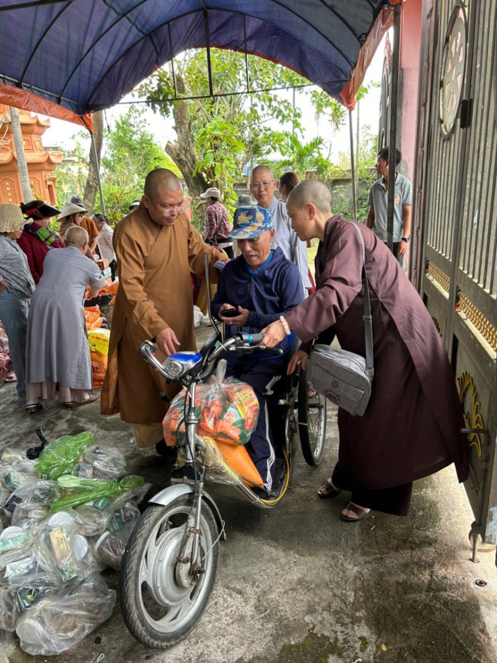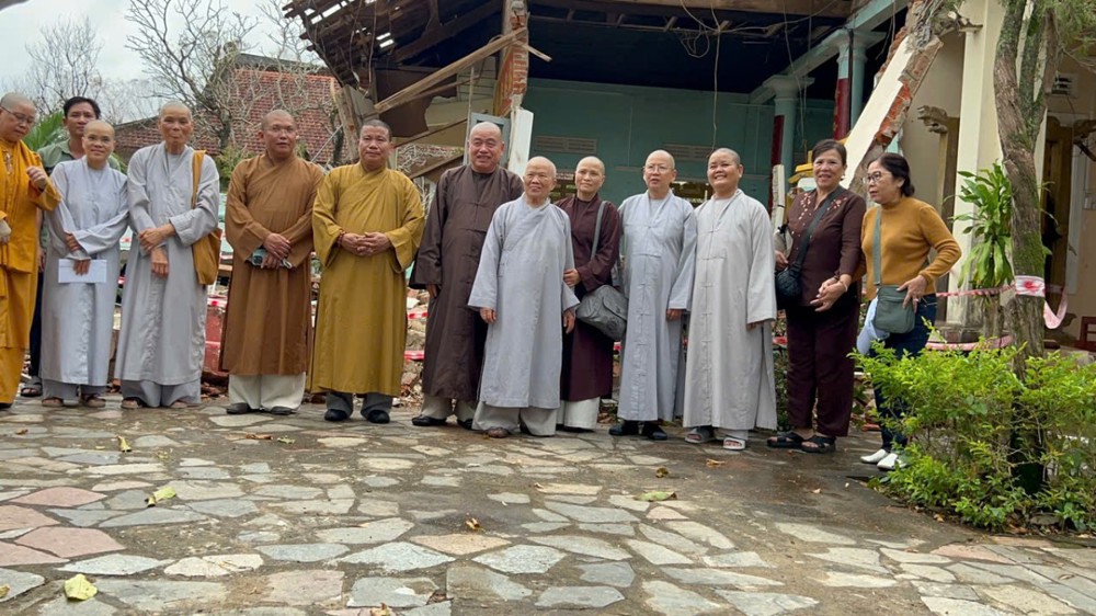 Buổi trưa ngày 16, đoàn đến chùa Linh Tiên, một trong những ngôi chùa chịu thiệt hại nặng nề nhất của bão số 13. Mái chùa bị tốc, tường vách sập đổ, cảnh vật tang thương khiến ai cũng không khỏi chạnh lòng. Với tấm lòng hướng về Tam Bảo và bà con, đoàn đã trao 102 phần quà trị giá 1,1 triệu đồng để hỗ trợ chùa và người dân ổn định lại cuộc sống. Chiều cùng ngày, đoàn tiếp tục đến chùa Cảnh Long, ngôi chùa bị tàn phá nặng do bão, thăm hỏi và chia sẻ cùng ĐĐ.Thích Trung Phúc, trụ trì chùa; đảnh lễ cúng dường và cầu chúc ngôi Tam bảo sớm được tu bổ, Phật tử sớm trở lại sinh hoạt bình thường. Sau đó, đoàn trao 50 phần quà, đến đồng bào địa phương, mỗi phần trị giá 1,1 triệu đồng, bao gồm gạo, mì và tiền mặt.