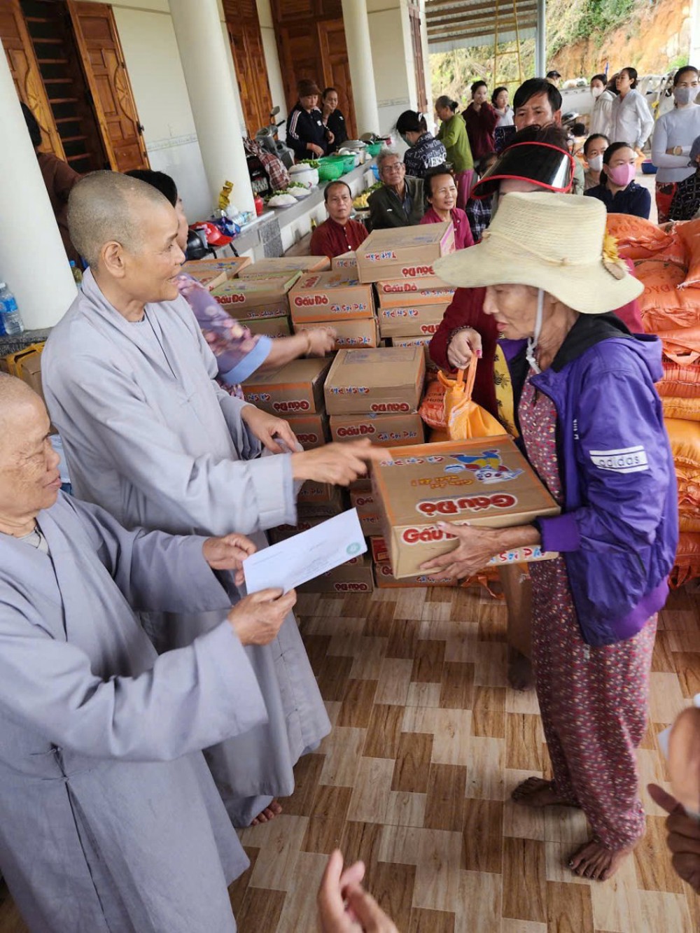 Tổng cộng 510 phần quà được đoàn trao tận tay đồng bào và nhiều tịnh tài tịnh vậy cúng dường các chùa bị hư hại do mưa bão với tổng kinh phí là 763.400.000 đồng. Đây là sự chung tay đóng góp của Tăng Ni và Phật tử tỉnh Lâm Đồng, là minh chứng sống động cho tinh thần từ bi của đạo Phật: “Sáng cho người thêm nhiều niềm vui, chiều giúp đời bớt khổ”.
