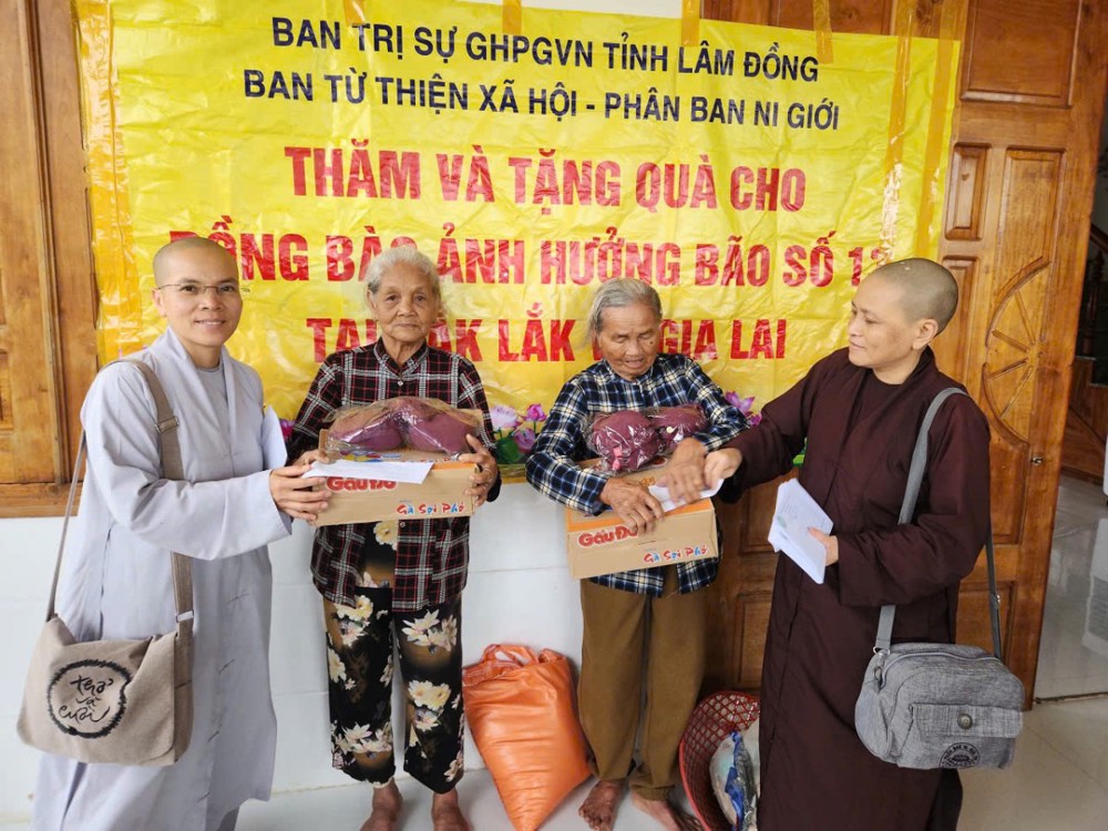 PSO- Trong ba ngày 15, 16 và 17/11/2025, thực hiện chỉ đạo của Thường trực Ban Trị sự Phật giáo tỉnh Lâm Đồng, với tấm lòng từ bi của người con, Phật Ban Từ Thiện Xã Hội Phật giáo và Phân Ban Ni giới tỉnh, đã thực hiện chuyến cứu trợ đến miền Phú Yên – tỉnh Đăk Lăk và miền Bình Định- tỉnh Gia Lai, trao tặng hơn 500 phần quà đến đồng bào và cúng dường các tự viện bị ảnh hưởng nặng bởi cơn bão số 13 (Kalmaegi) với tổng kinh phí hơn 763 triệu đồng.