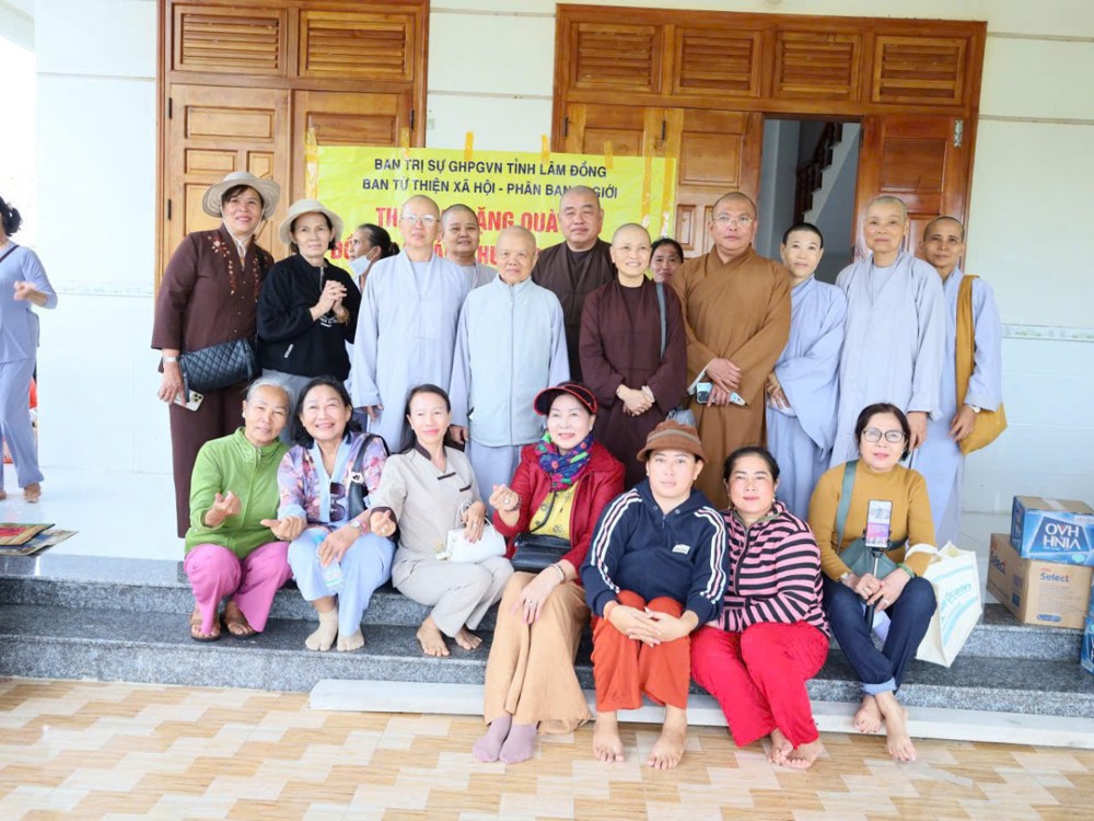 Đoàn do TT. Thích Quảng Cao, Trưởng Ban TTXH Phật giáo tỉnh Lâm Đồng, làm Trưởng đoàn; TT. Thích Từ Minh, chứng minh Ban Kinh tế Tài chánh Phật giáo tỉnh; chư Tôn đức Phó Ban TTXH; Ni trưởng Thích Nữ Như Mãn, Chứng minh PBNG PG tỉnh; Ni sư Thích Nữ Chơn Tịnh, Phó PBNG PG tỉnh; chư Tôn đức Ni thành viên PBNG PG tỉnh; chư Tôn đức Tăng Ni và quý Phật tử thành viên Ban TTXH PG tỉnh.