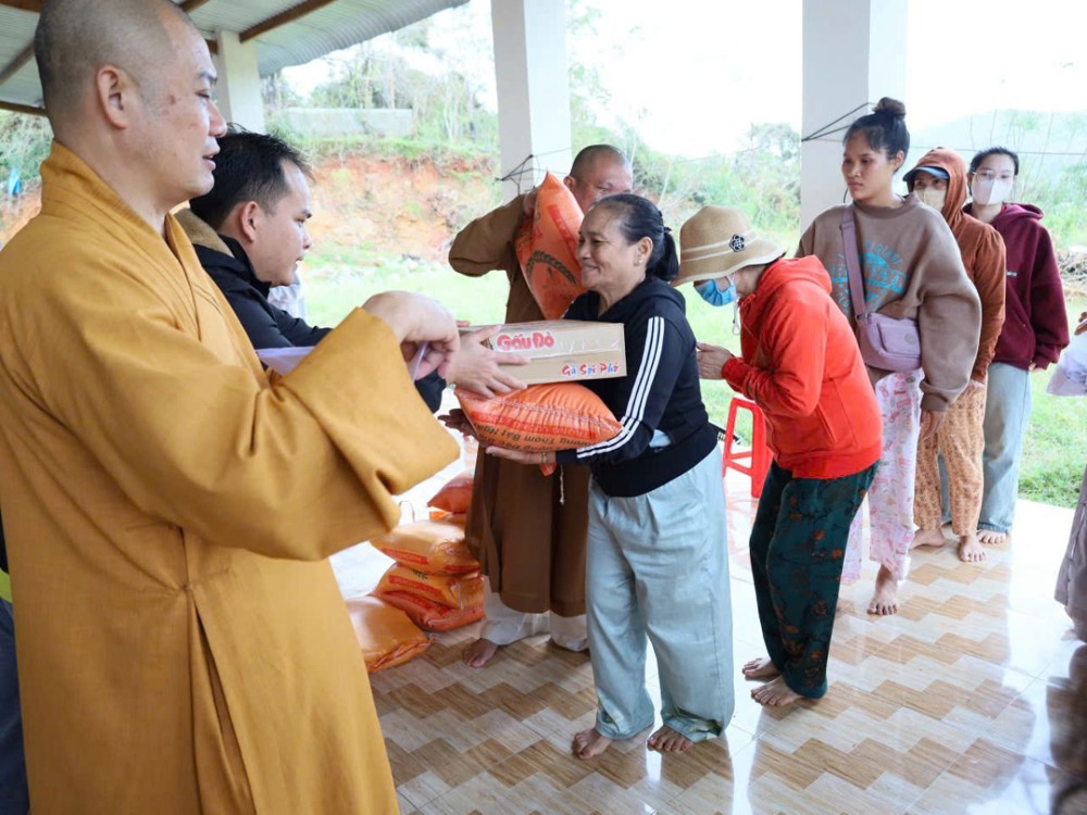 PSO- Trong ba ngày 15, 16 và 17/11/2025, thực hiện chỉ đạo của Thường trực Ban Trị sự GHPGVN tỉnh Lâm Đồng, bằng tấm lòng từ bi của người con Phật, đoàn Ban Từ Thiện Xã hội Phật giáo và Phân ban Ni giới tỉnh, do TT. Thích Quảng Cao, Trưởng Ban TTXH Phật giáo tỉnh làm Trưởng đoàn, đã thực hiện chương trình cứu trợ miền Phú Yên – tỉnh Đăk Lăk và miền Bình Định- tỉnh Gia Lai, bằng hoạt động trao tặng hơn 500 phần quà đến đồng bào và cúng dường các tự viện bị ảnh hưởng nặng bởi cơn bão số 13 (Kalmaegi) với tổng kinh phí hơn 800 triệu đồng.
