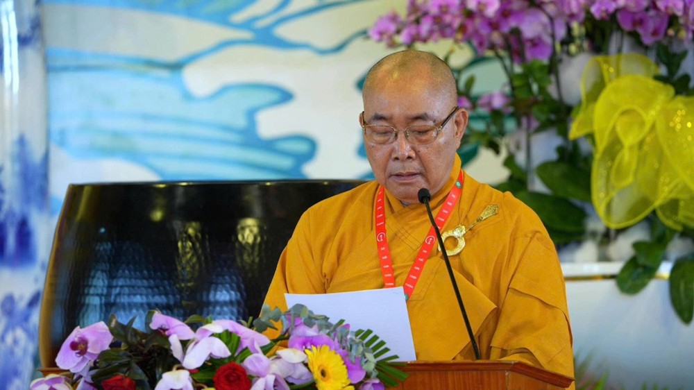 Trước khi diễn ra lễ bế mạc, TT. Thích Thông Triêm đọc văn tưởng niệm Đức Vua – Phật hoàng Trần Nhân Tông.