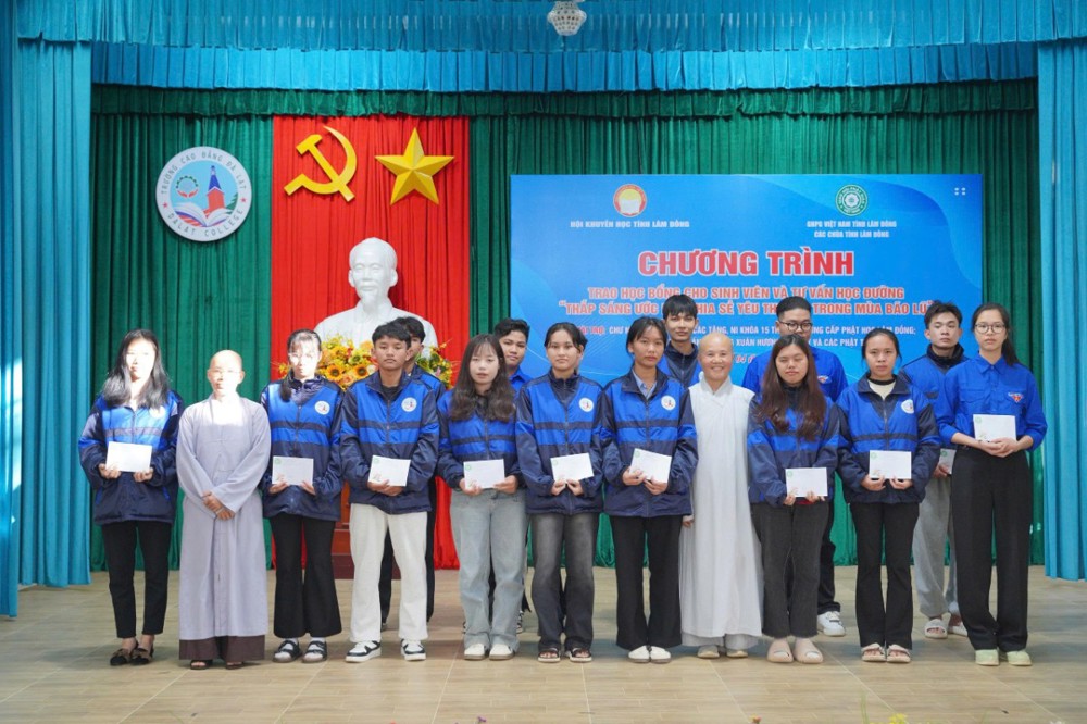 PSO – Chiều ngày 04/12/2025 (nhằm ngày 15/10 năm Ất Tỵ), chư Tôn đức Ni đã trang trọng tổ chức lễ trao học bổng cho 45 em học sinh tại Trường Cao đẳng Đà Lạt (tỉnh Lâm Đồng). Đây là hoạt động mang ý nghĩa thiết thực, thể hiện tinh thần từ bi của Phật giáo trong việc đồng hành cùng sự nghiệp giáo dục, nâng bước các em trên con đường học tập.