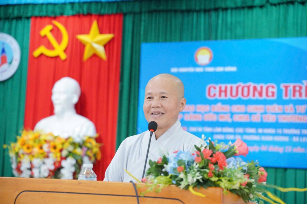 Tham dự buổi lễ có Ni sư Thích Nữ Hạnh Nhẫn – Phó Thư ký Ban Hoằng Pháp GHPGVN tỉnh, trụ trì chùa Tâm Ấn; bà Tô Thị Ngọc Hạnh – Chủ tịch Hội Khuyến học tỉnh Lâm Đồng; bà Nguyễn Thị Mỹ Hạnh – Phó Hiệu trưởng Trường Cao đẳng Đà Lạt cùng các em học sinh.