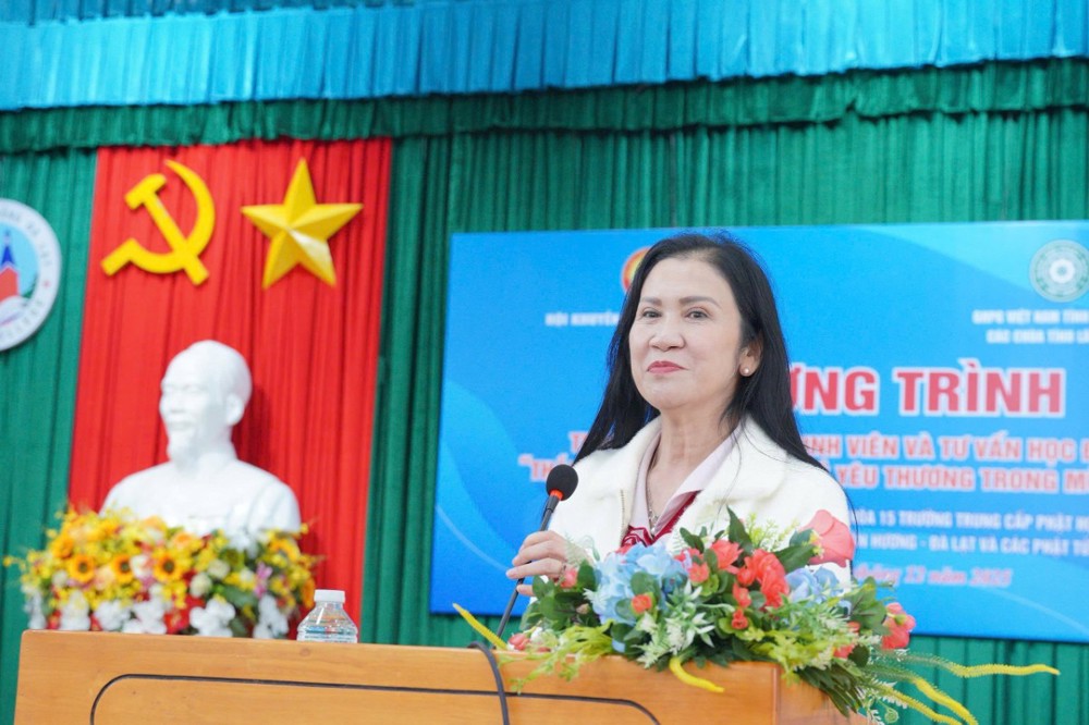 Phát biểu tại buổi lễ, bà Tô Thị Ngọc Hạnh bày tỏ lòng tri ân sâu sắc đến chư Tôn đức Ni đã dành sự quan tâm, yêu thương và hỗ trợ kịp thời cho các em học sinh thông qua những suất học bổng ý nghĩa.