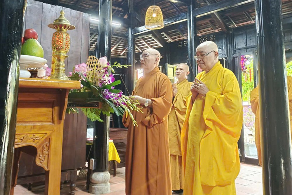 Trước hương án, chư Tôn đức thắp hương tưởng niệm, nhất tâm cầu nguyện Giác linh Hòa thượng cao đăng Phật quốc.