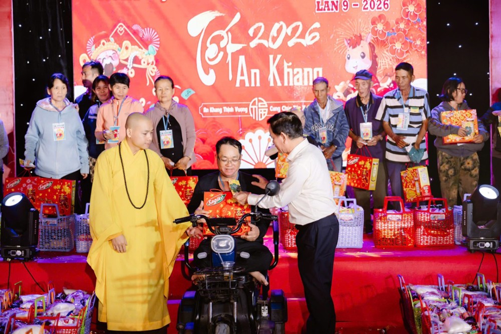 PSO – Chiều ngày 06/02/2026 (nhằm 19 tháng Chạp năm Ất Tỵ), trong không khí hân hoan đón Tết cổ truyền Xuân Bính Ngọ 2026, chùa Kỳ Viên (xã Hàm Tân, tỉnh Lâm Đồng) đã phối hợp cùng Nhóm Mái Nhà Đồng Cảm & Sẻ Chia tổ chức chương trình trao tặng 200 phần quà Xuân đến bà con có hoàn cảnh khó khăn trên địa bàn.