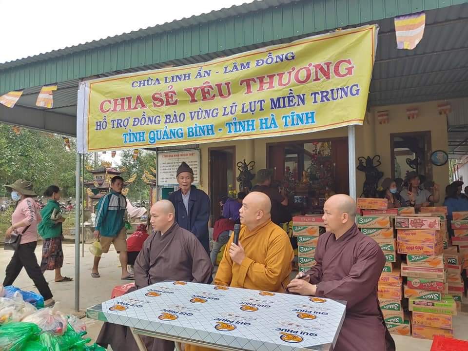 PSO - Trong những ngày gần đây, bão lũ đã liên tiếp tàn phá tại các tỉnh miền Trung, gây hậu quả nghiêm trọng về người và tài sản, ảnh hưởng nặng nề đến kinh tế cũng như tinh thần của người dân miền Trung. Hưởng ứng lời kêu gọi của TƯ GHPGVN; BTS GHPGVN tỉnh Lâm Đồng, thực hiện sứ mệnh của người đệ tử Phật với tấm lòng Từ bi trên tinh thần “Phục vụ chúng sinh là cúng dường chư Phật”. TT. Thích Tâm Vị - Trụ trì chùa Linh Ẩn, thuộc thị trấn Nam Ban, huyện Lâm Hà, tỉnh Lâm Đồng, đã thành lập đoàn từ thiện, kêu gọi sự chung tay góp sức tài lực vật lực của các Phật tử, các nhà hảo tâm và các Mạnh thường quân ủng hộ đồng bào miền Trung trong cơn khó khăn hoạn nạn này.