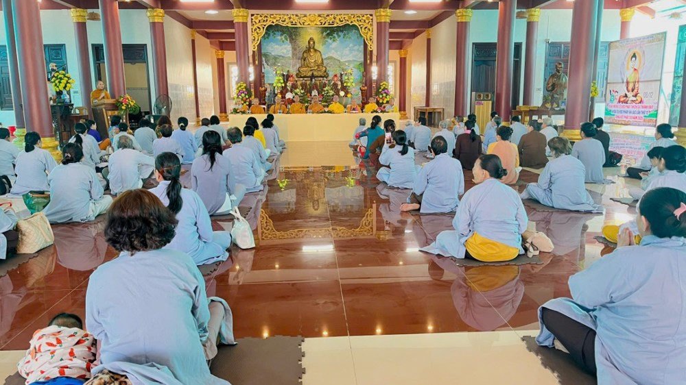 Sau thời Pháp thoại, đại chúng đảnh lễ tám tướng Thành đạo, niệm Phật và hồi hướng công đức gió hòa mưa thuận, đất nước bình an, khắp nơi đạo giải thoát được tuyên dương, mọi giới mọi loài quy y tăng phước huệ.