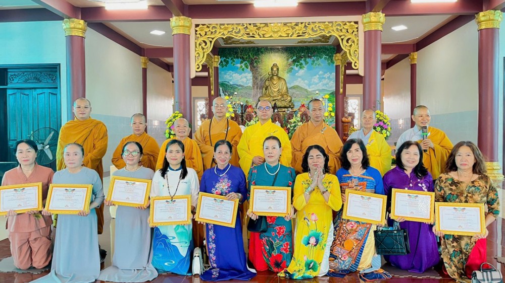Ban Đạo từ, đại diện Ban Chứng minh đã ghi nhận và tán dương công đức Sư cô trụ trì cùng chư Ni bổn tự đã nỗ lực hoàn thành công tác Phật sự năm Ất Tỵ với nhiều chương trình đem lại an vui cho xã hội, nhất là việc duy trì đều đặn Pháp hội Học Pháp An Lạc- tạo điều kiện thuận lợi để truyền bá Phật pháp đến với mọi người.