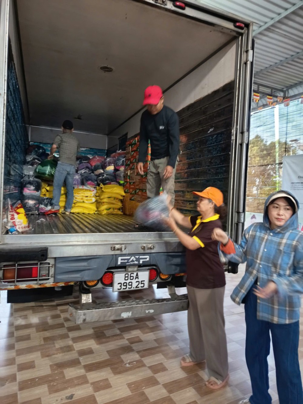 Mỗi phần quà trao đến các hộ gia đình bao gồm gạo, mì, các nhu yếu phẩm, mền, quần áo … và lời thăm hỏi chúc khỏe, chúc đồng bào cố gắng vượt qua khó khăn, sớm ổn định cuộc sống để tái sản xuất.