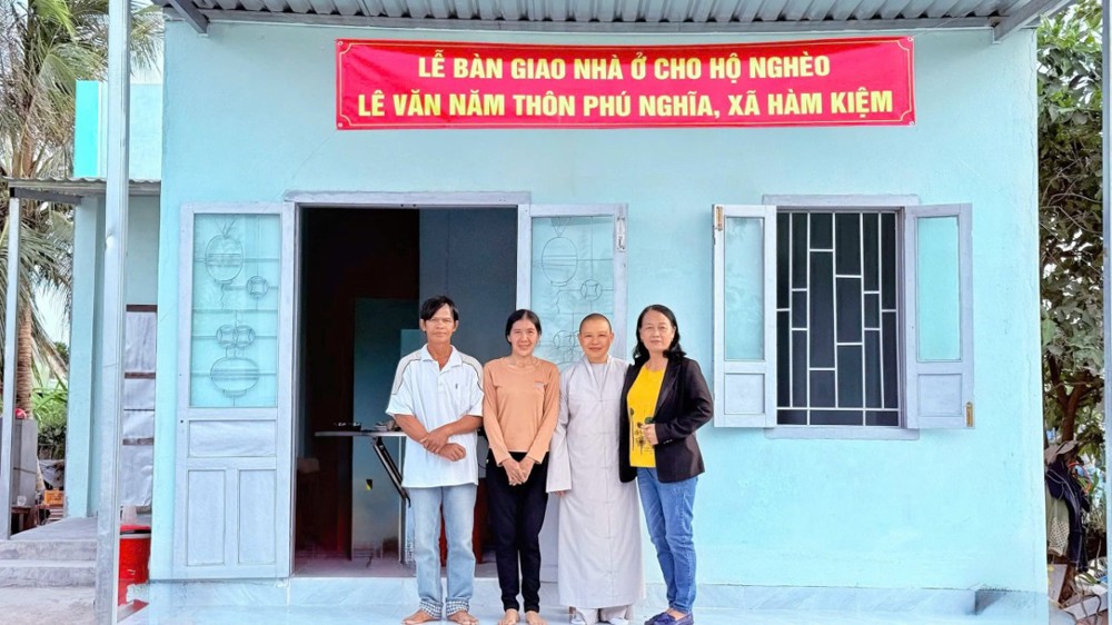 Thấu hiểu và sẻ chia cùng hoàn cảnh ấy, Sư cô Trụ trì đã vận động Phật tử trong và ngoài nước cùng hỗ trợ tài chánh xây dựng căn nhà cấp 4, diện tích 90m²với tổng kinh phí 110 triệu đồng. Căn nhà được hoàn thành và trao tặng đúng vào dịp giáp Tết, mang theo sự ấm áp và niềm hân hoan đến với gia đình.