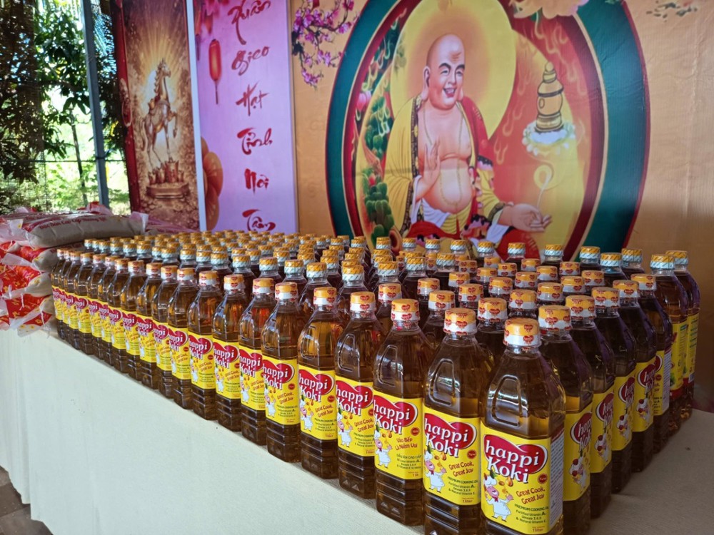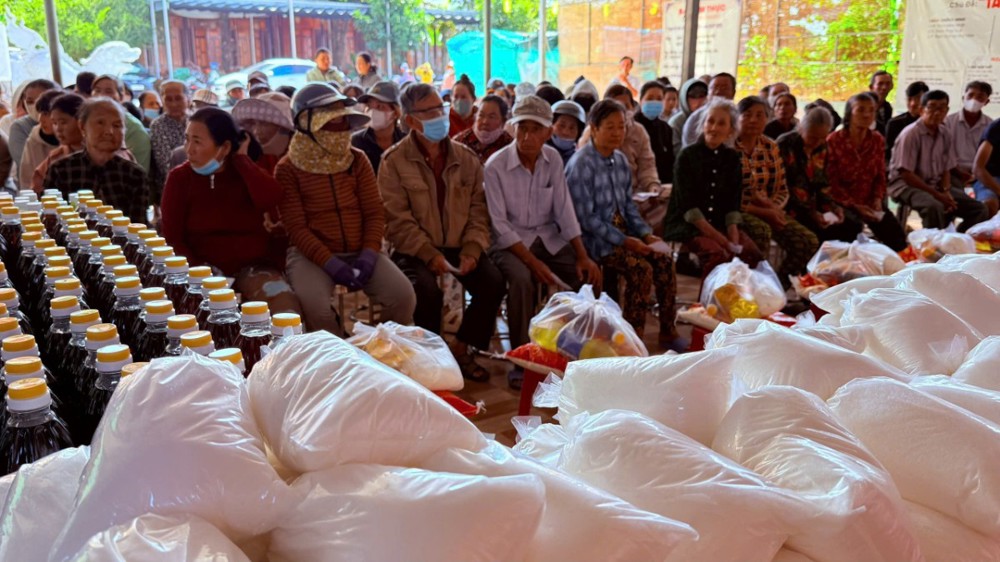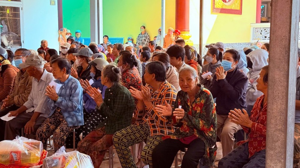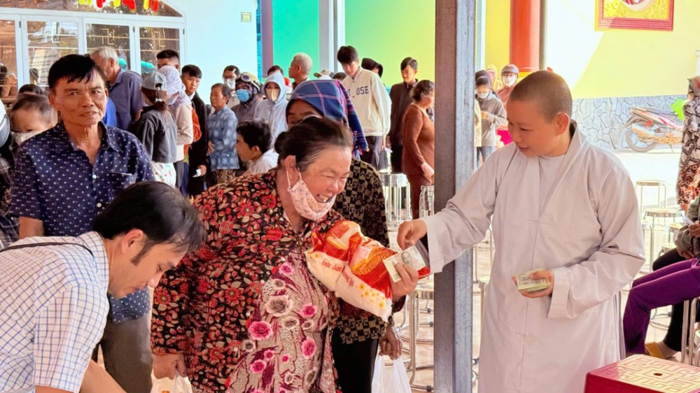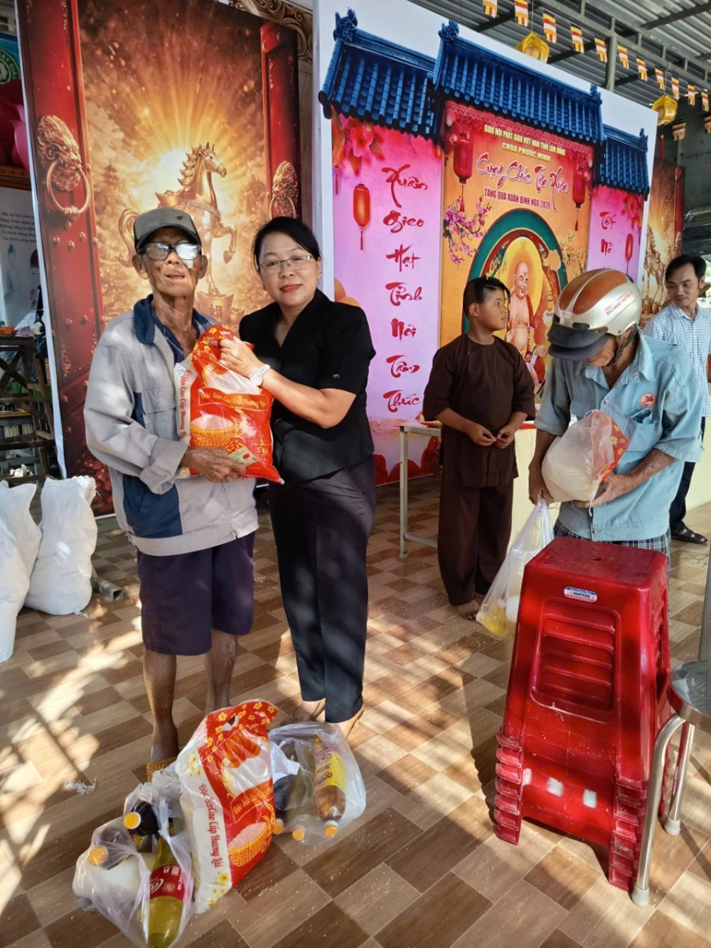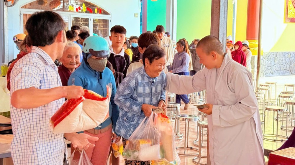 Mỗi phần quà gồm tiền mặt, gạo, mì, dầu, đường, bột ngọt… tuy không lớn về vật chất, nhưng là tấm lòng chân thành, gói trọn nghĩa tình giữa người trao và người nhận, thể hiện tinh thần từ bi của đạo Phật, lan tỏa tình người ấm áp trong những ngày giáp Tết, khi Xuân vui đang về trên khắp mọi miền quê hương.
