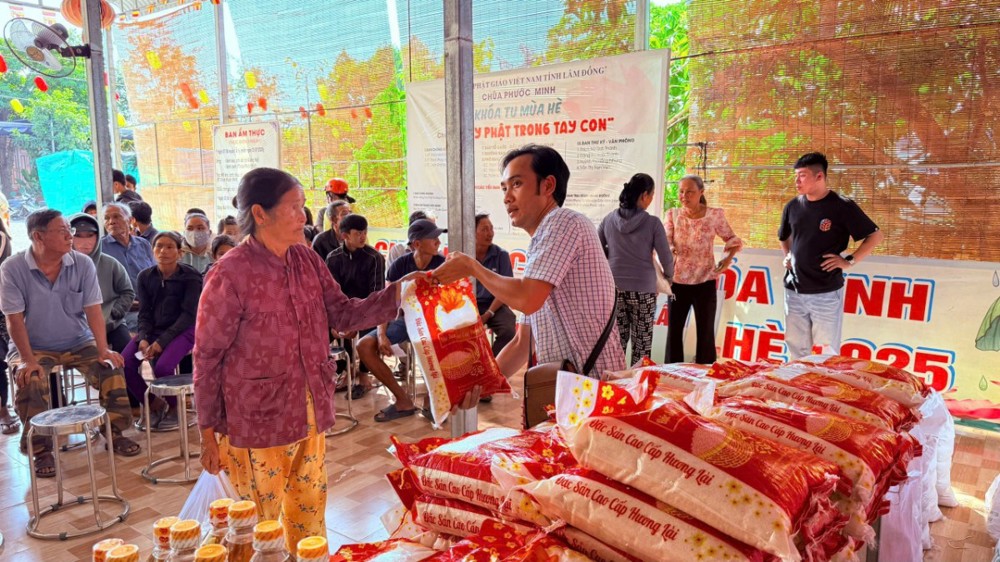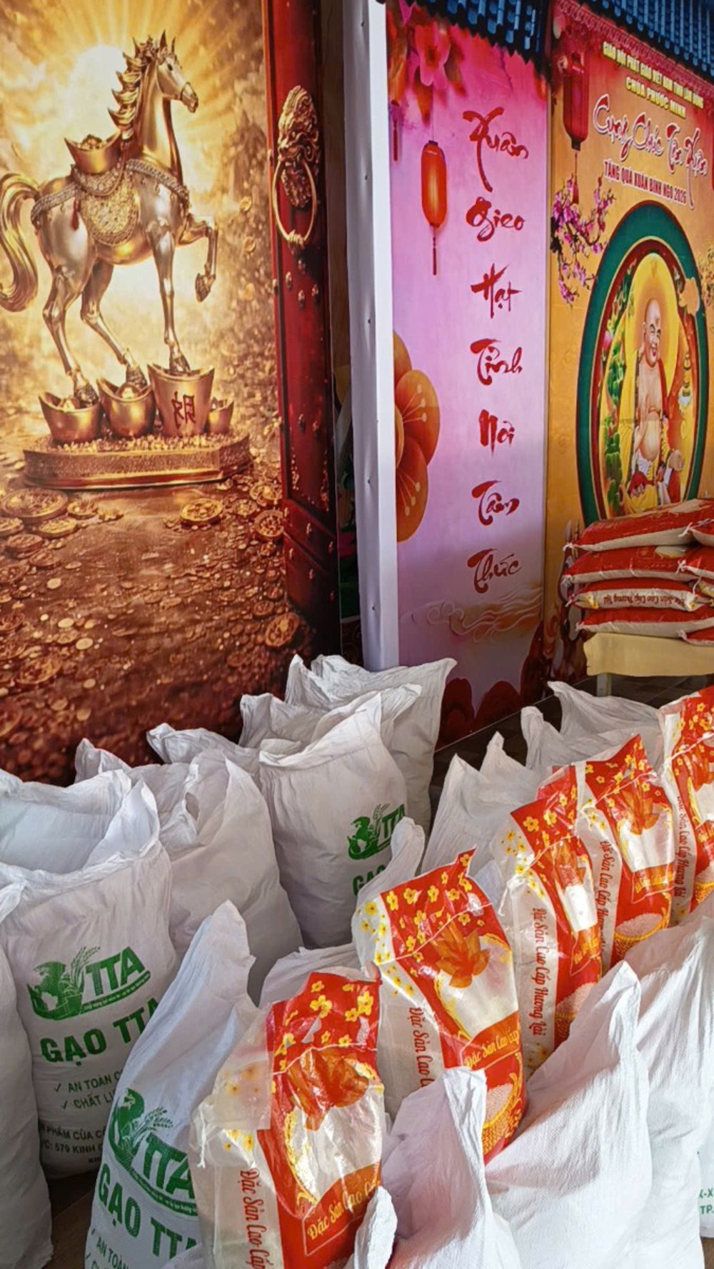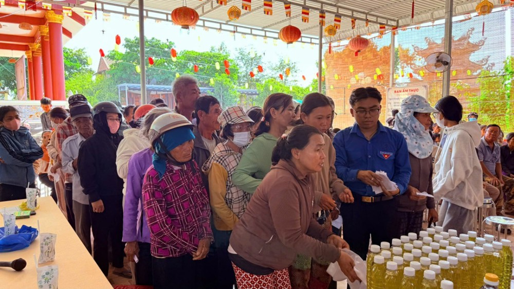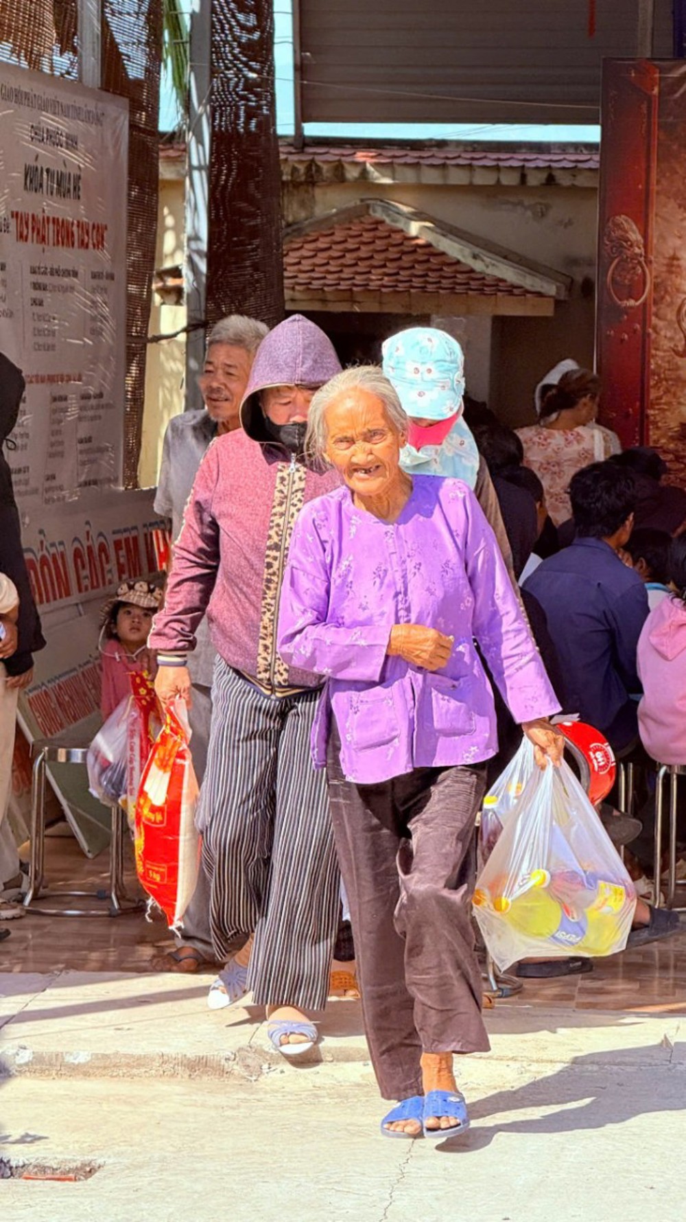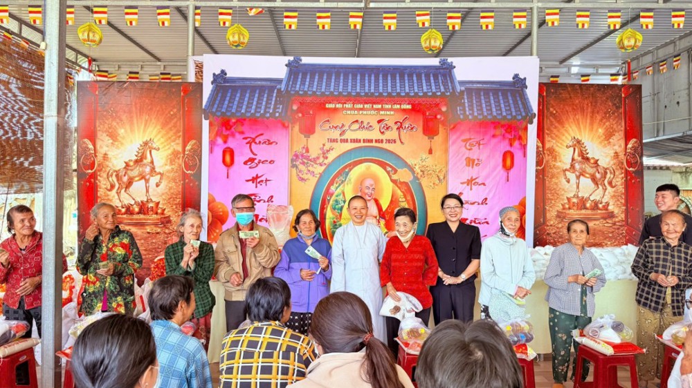Mỗi phần quà gồm tiền mặt, gạo, mì, dầu, đường, bột ngọt… tuy không lớn về vật chất, nhưng là tấm lòng chân thành, gói trọn nghĩa tình giữa người trao và người nhận, thể hiện tinh thần từ bi của đạo Phật, lan tỏa tình người ấm áp trong những ngày giáp Tết, khi Xuân vui đang về trên khắp mọi miền quê hương.