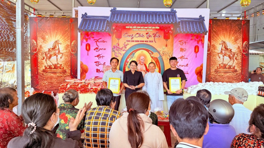 PSO- Đồng hành cùng xã hội chăm lo Tết Nguyên đán cho người nghèo, chiều ngày 08/02/2026, Sư cô Thích Nữ Nguyên Minh, Phó Ban TTXH Phật giáo Lâm Đồng, trụ trì chùa Phước Minh (thôn Dân Bình, xã Hàm Kiệm) kết hợp cùng chánh quyền xã tổ chức trao 200 phần quà Xuân Bính Ngọ, trị giá 70 triệu đồng, đến người dân có hoàn cảnh khó khăn trên địa bàn hai xã Hàm Kiệm và Hàm Thạnh.