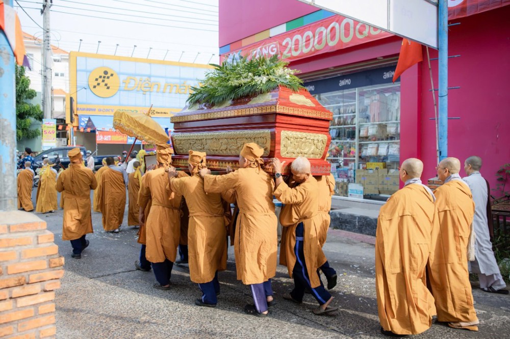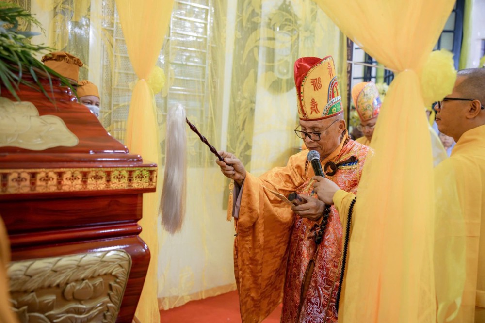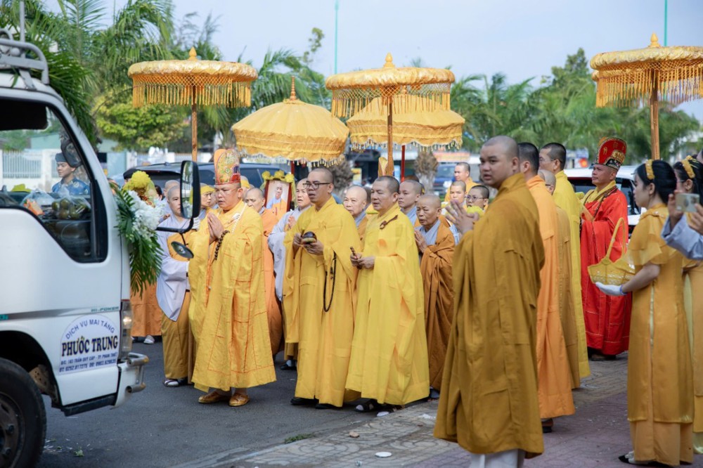 HT. Thích Phước Túc , đã cử hành lễ phất trần. Sau đó TT Thích Quảng Cao cùng chư Tôn đức tăng ni cung tống kim quan Ni trưởng thăng thượng giá về đài hỏa táng Hòa Lạc viên - Sala Garden Đồng Nai, thực hiện nghi thức trà tỳ.