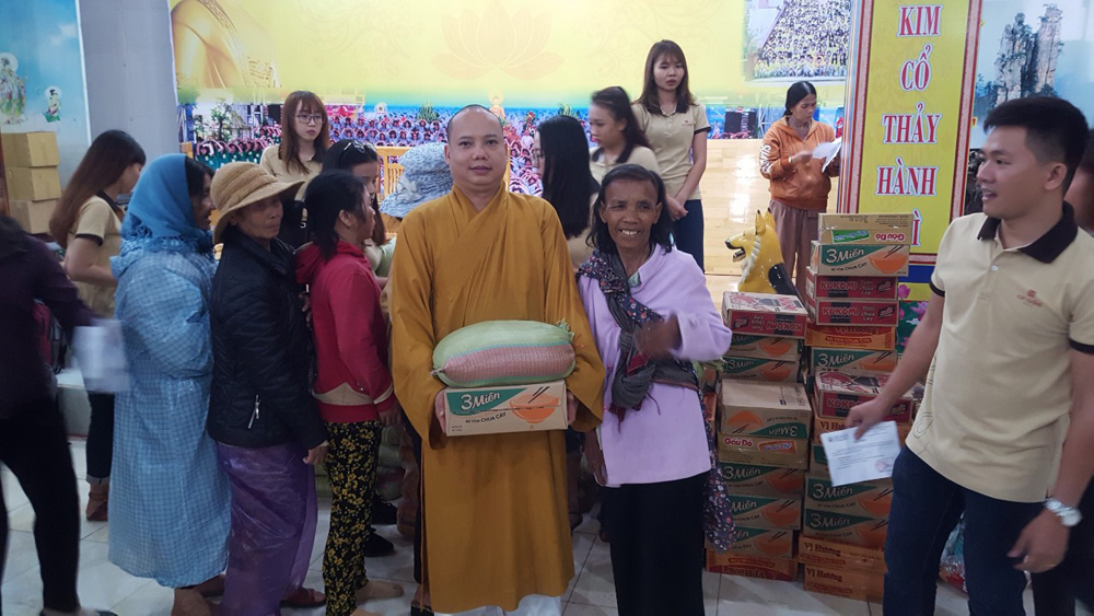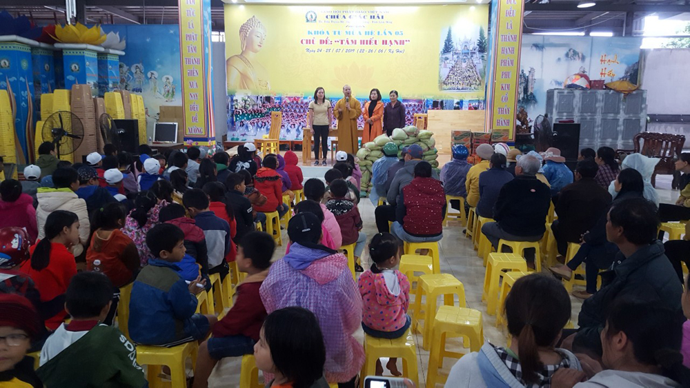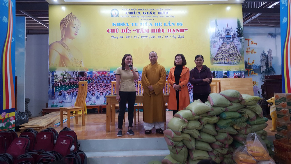 Trước buổi trao quà ĐĐ.Thích Trí Định – Phó trưởng Phân ban Thanh thiếu nhi Phật tử TƯ, Phó trưởng ban Hoằng pháp GHPGVN tỉnh Lâm Đồng, Trưởng Ban tổ chức, trụ trì chùa Giác Hải đã có đôi lời phát biểu tri ân các nhà hảo tâm đã chung tay góp sức, đồng hành cùng bổn tự phát những phần quà và vượt đường xá xa xôi… trao tận tay các em học sinh chút tình ấm áp của đất phương nam. Đồng thời, chúc các em học sinh chăm ngoan, học tốt.