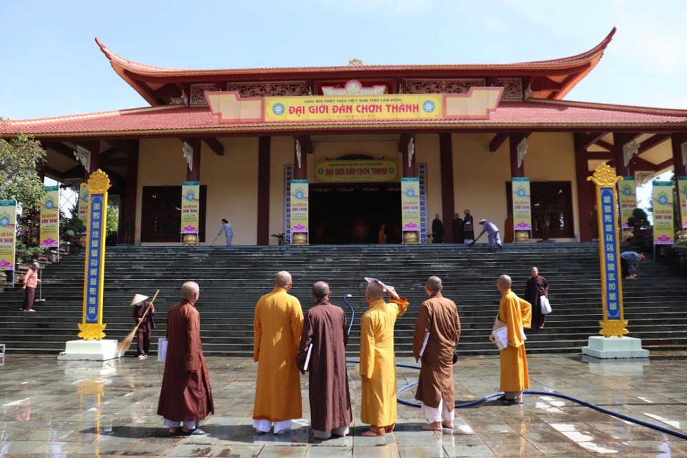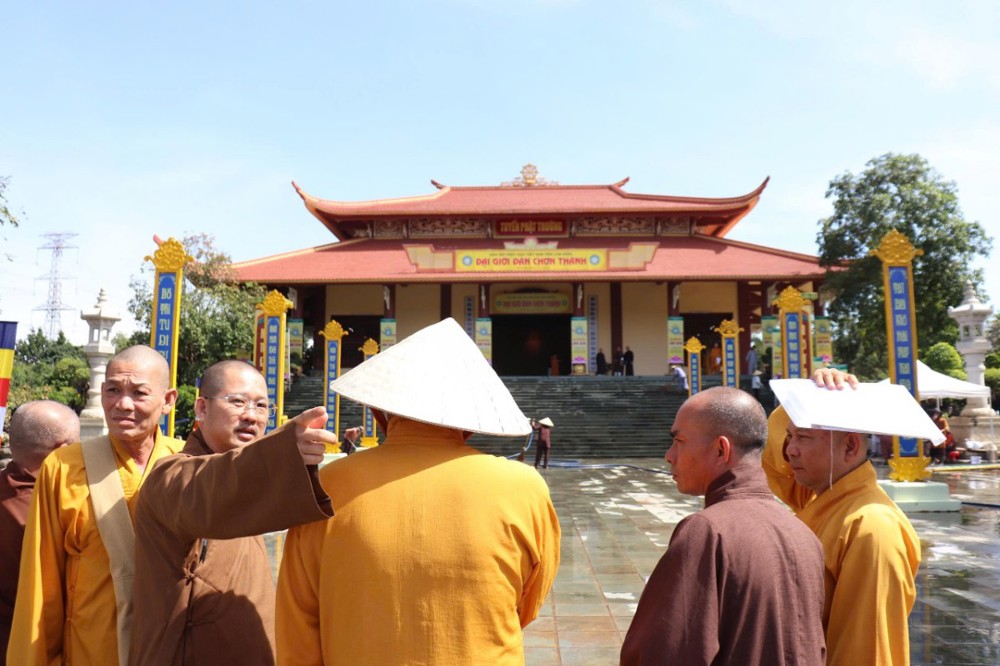 Tiếp đó, Hòa thượng trùng tuyên giáo giới của Hòa thượng Phó Pháp chủ HĐCM, Chủ tịch HĐTS GHPGVN: “Giới đàn phải lấy sự trang nghiêm – thanh tịnh làm nền tảng, lấy nội dung – hình thức hài hòa làm tiêu chí và lấy tinh thần tiết giảm – tri túc làm kim chỉ nam để không gây lãng phí cho xã hội." Lời dạy ấy chính là tiêu bảng định hướng cho toàn bộ công tác chuẩn bị Đại Giới đàn Chơn Thành năm nay.