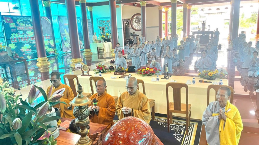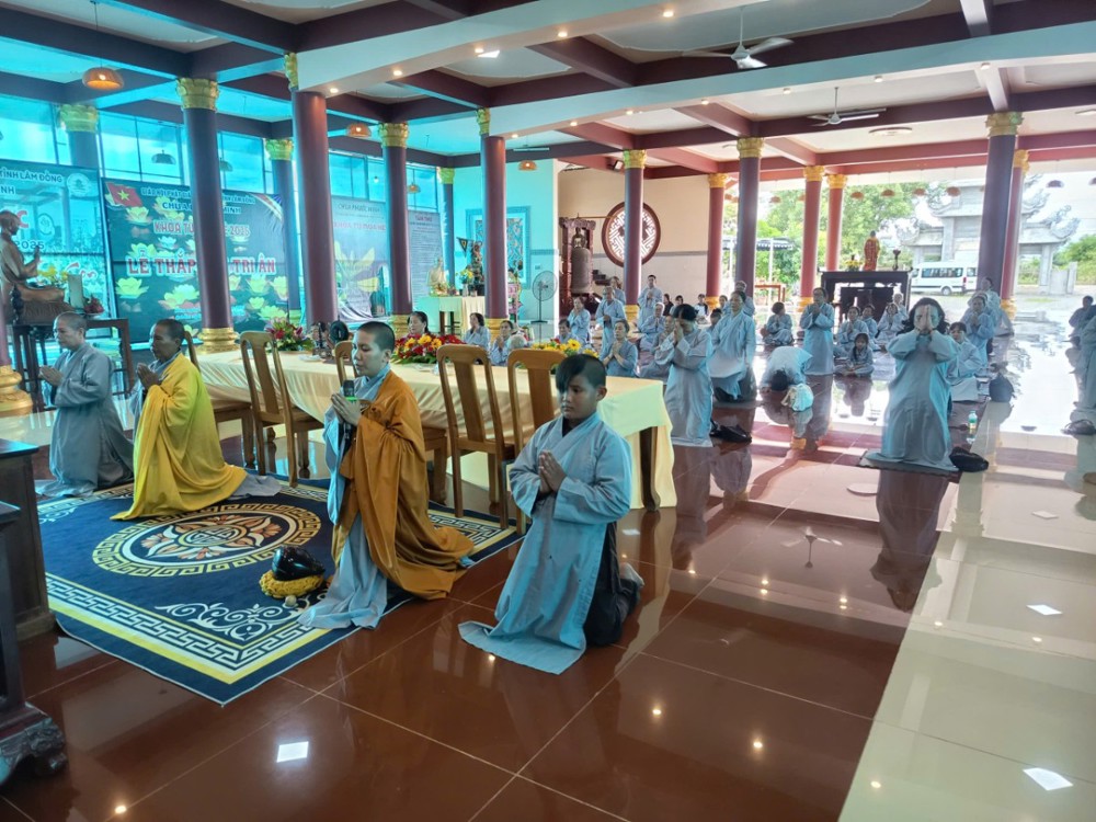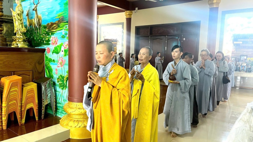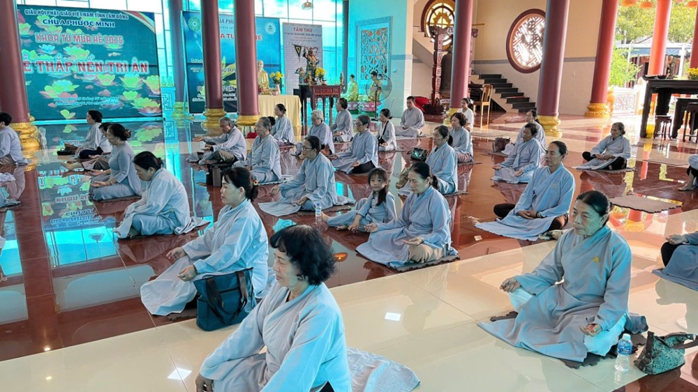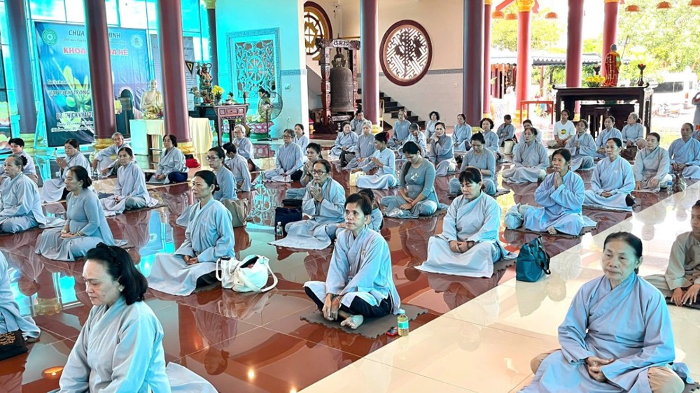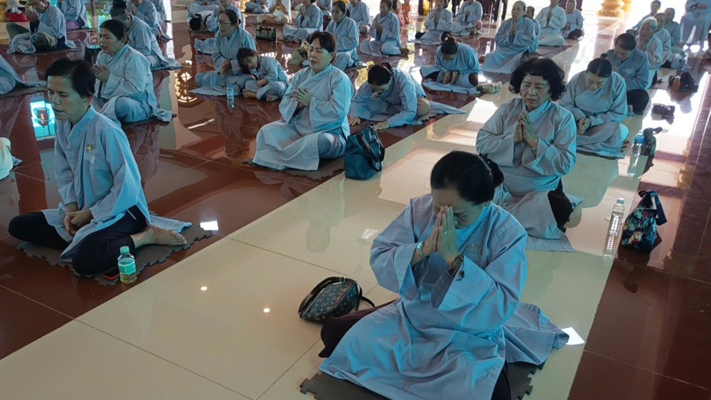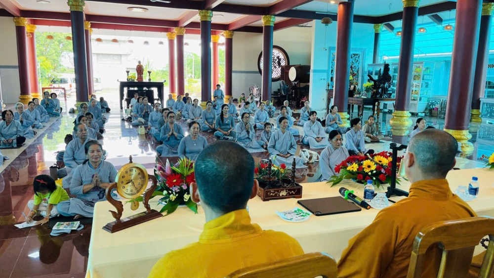 Đầu giờ chiều, đại chúng cùng tọa thiền, trì chú đại bi và tham gia Pháp đàm Phật học Ứng dụng.