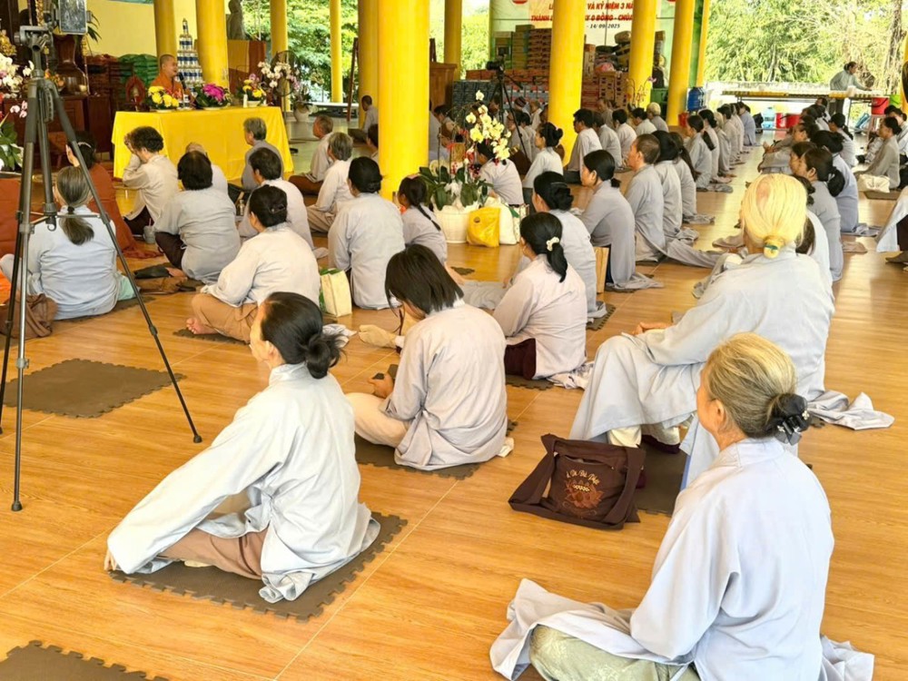 Tại khóa tu, chư Tôn đức đã niêm hương bạch Phật, chứng minh gia hộ Phật sự được viên thành, hồi hướng công đức phong điều vũ thuận, quốc thái dân an, thiên hạ thái bình, chư tai tiêu diệt.