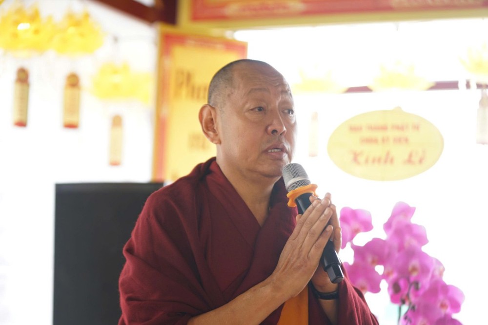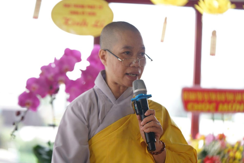 Ban đạo từ tại buổi lễ, Hòa thượng Thích Thanh Tân đã hoan hỷ tán dương tâm nguyện và công đức của Ni sư Thích Nữ Tịnh Trang cùng chư Phật tử chùa Linh Bảo trong việc phát tâm xây dựng, trùng tu ngôi Đại hùng Bảo điện trang nghiêm, thể hiện tinh thần hộ trì Tam bảo, phụng sự đạo pháp. Hòa thượng nhấn mạnh, công trình hoàn thành không chỉ là niềm hoan hỷ của bổn tự mà còn là thành quả của sự đồng lòng, đoàn kết và tín tâm vững bền. Ngài khuyến tấn Ni sư cùng đại chúng tiếp tục tinh tấn tu học, lấy từ bi làm gốc, trí tuệ làm hướng đi, góp phần lan tỏa ánh sáng Phật pháp, mang lại an lạc cho muôn người.