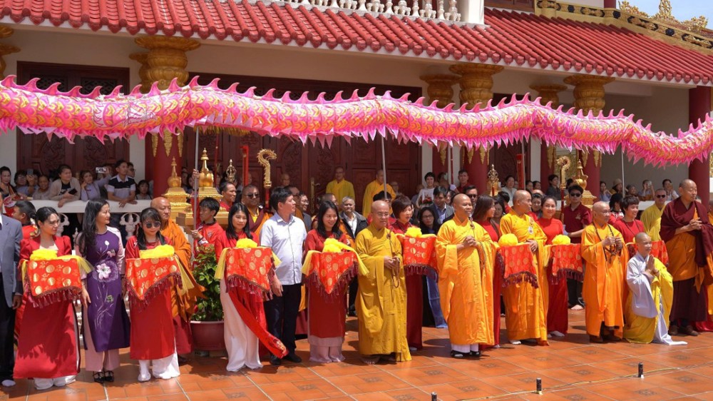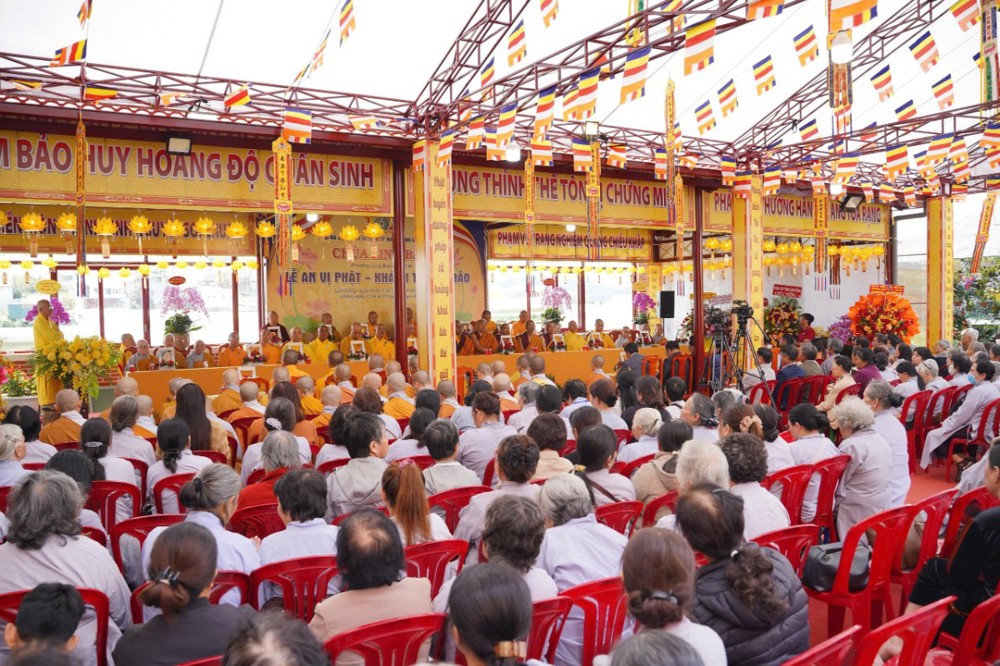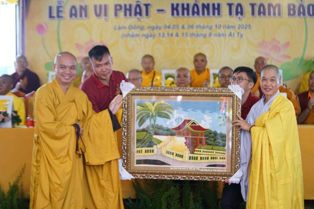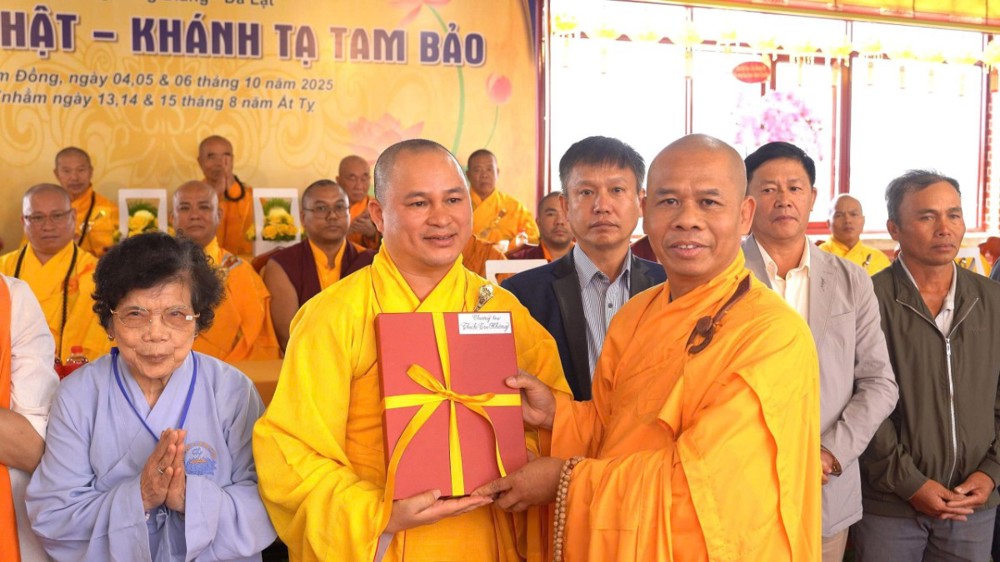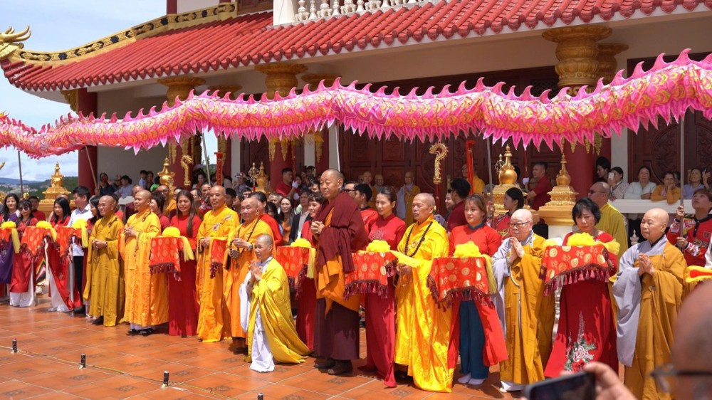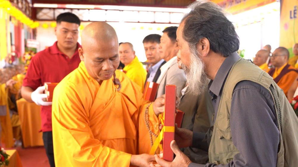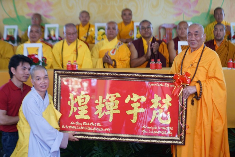 Tại buổi lễ, Ban Tổ chức đã trang trọng trao bằng tuyên dương công đức đến các cá nhân và tập thể đã phát tâm đóng góp cho công trình Đại hùng Bảo điện, ghi nhận tấm lòng hộ trì Tam bảo và chung tay kiến tạo ngôi già lam trang nghiêm.
